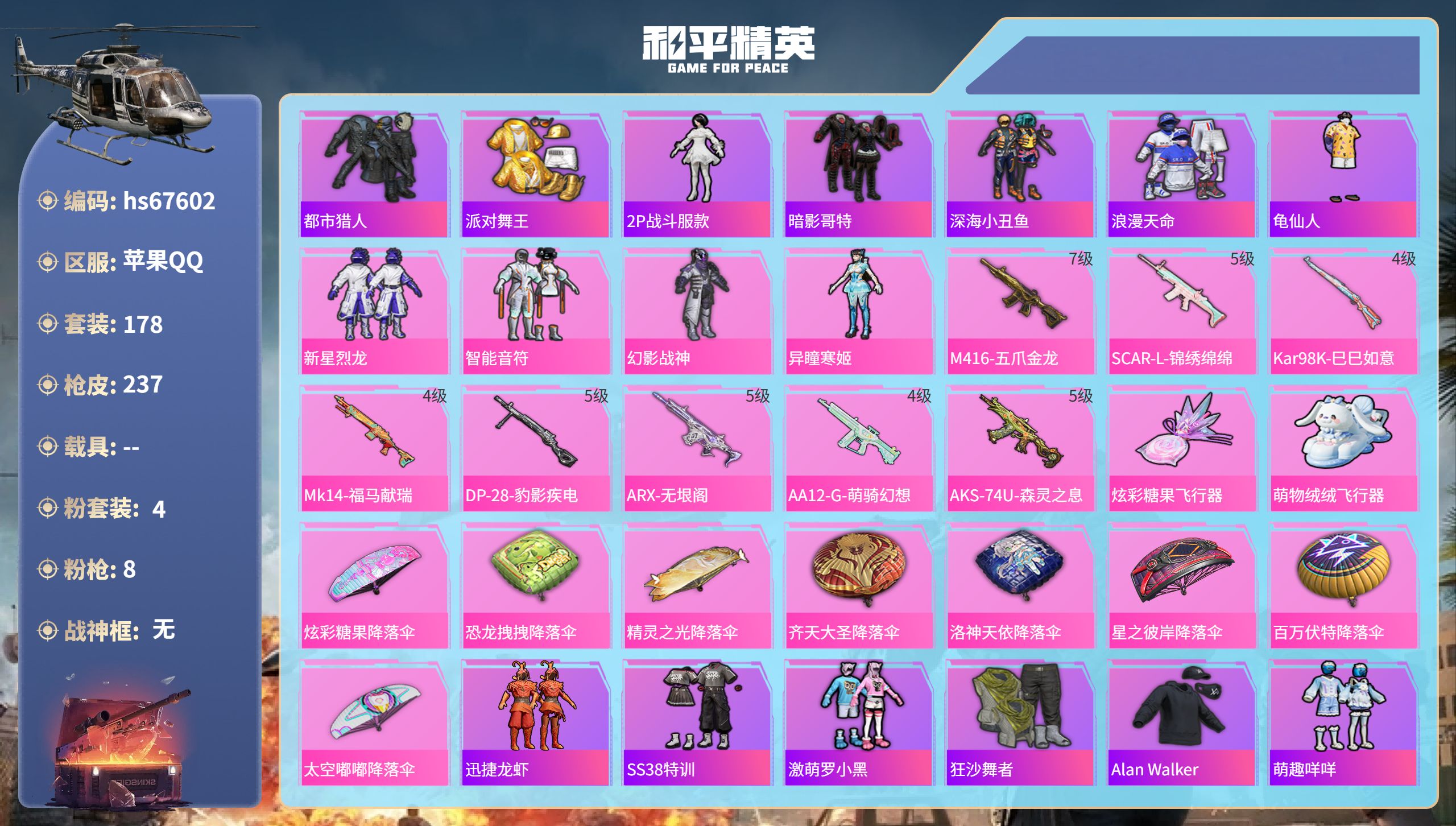 11王牌印记-4粉装-8特效枪-68114热力值-178套装-237枪皮-1卓越印记