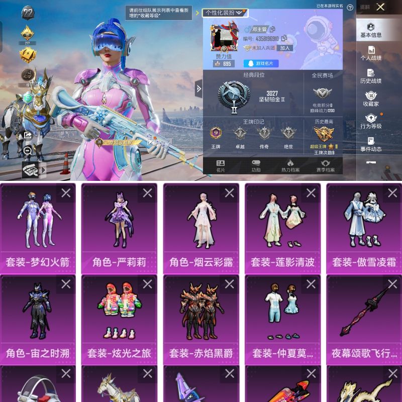 12粉装-5特效枪-0载具-5粉色飞行器-84413热力值-10王牌印记-201套装-252枪皮