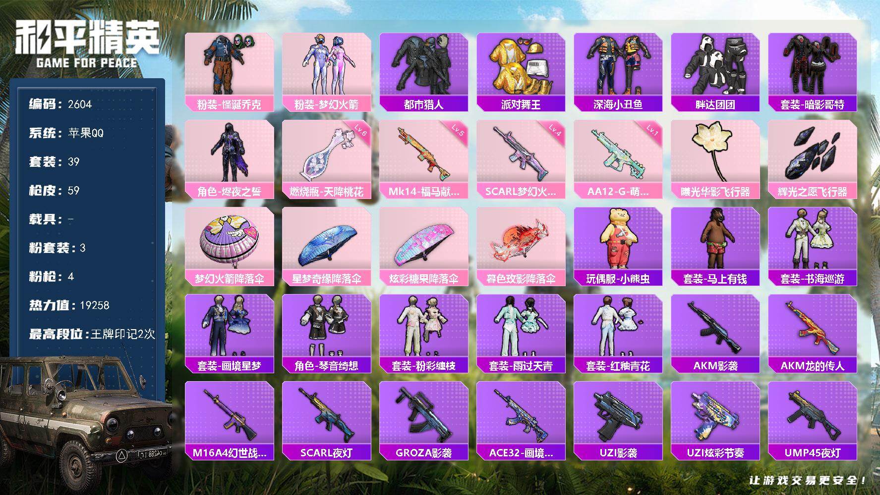 hs61396 苹果手Q-18王牌印记-5粉装-6特效枪-2载具-71571热力值-152套装-22