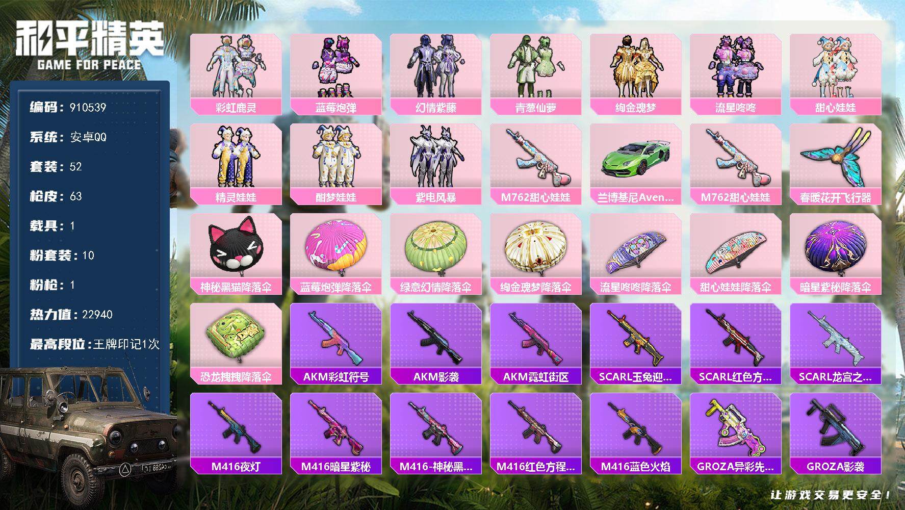 52套装/枪械1/装备66/载具1/战备49/王牌印记1/热力值22940/