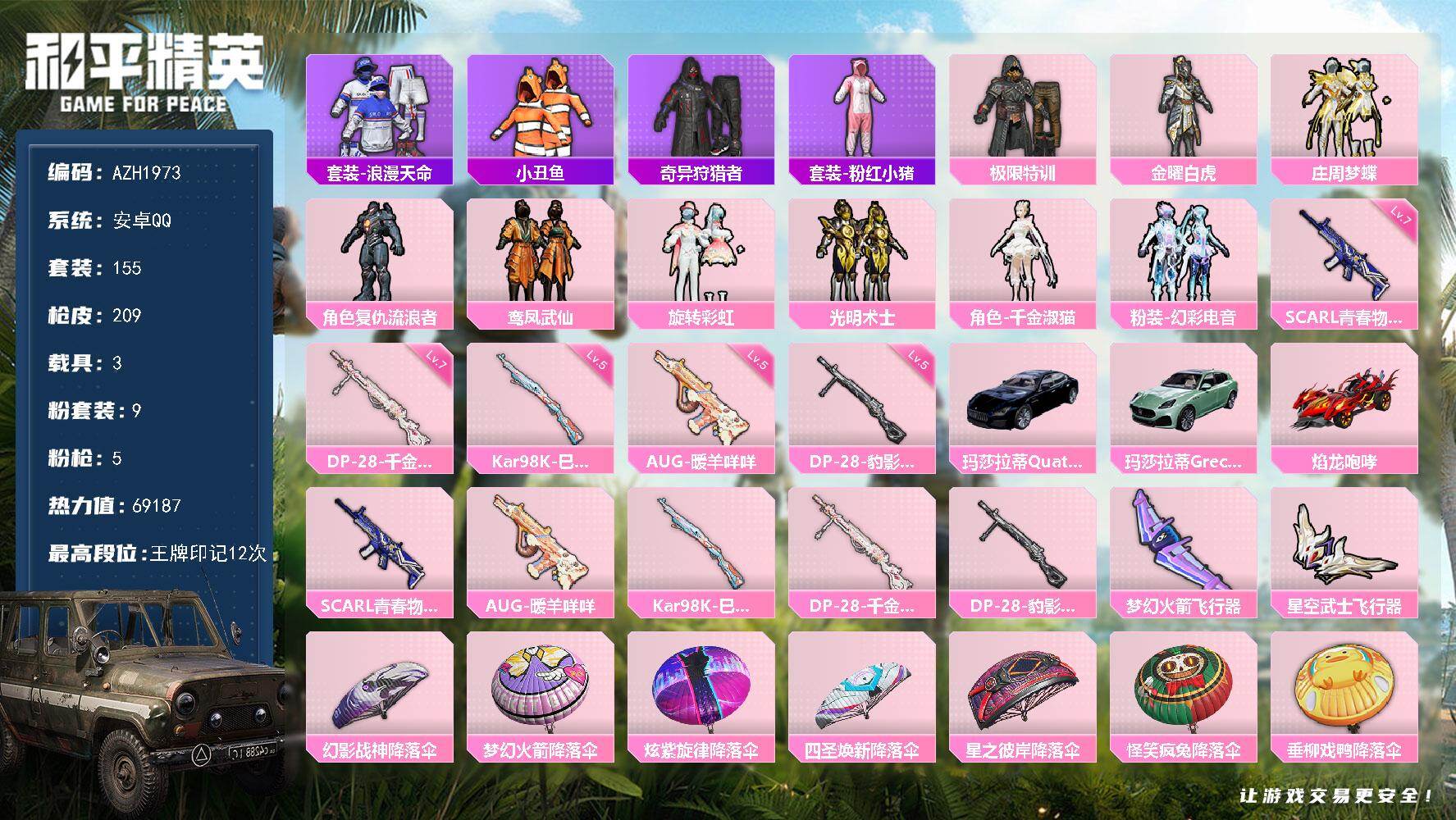 安卓 手Q-8粉装-7特效枪-0载具-4粉色飞行器-70643热力值-7王牌印记