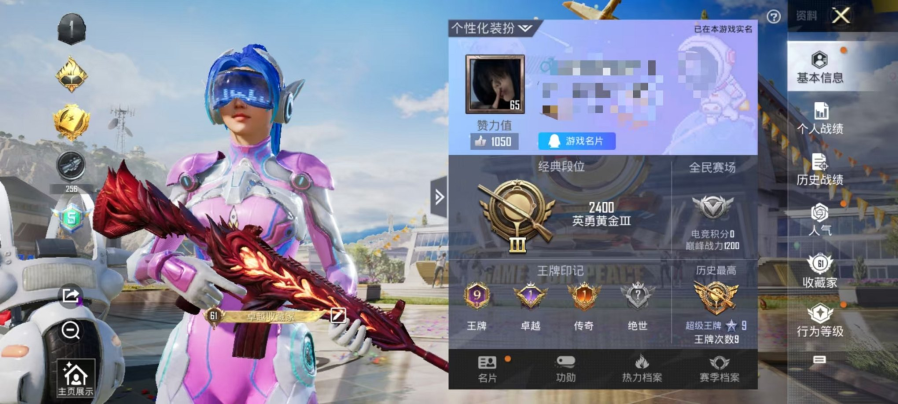 136套装/枪械10/装备259/战备129/王牌印记9/热力值58782/五级