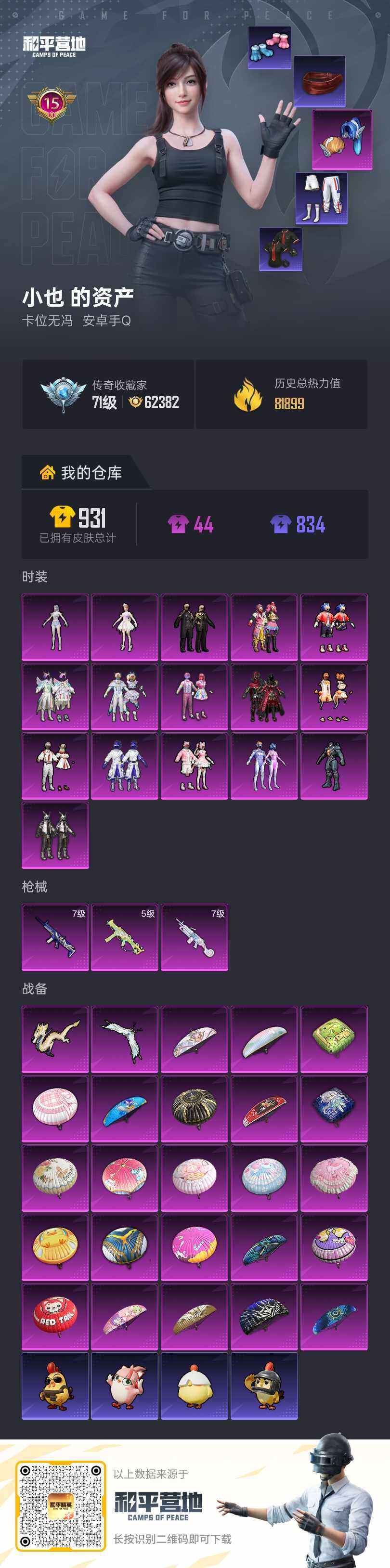 安卓 手Q-3粉装-9特效枪-1载具-1粉色飞行器-85310热力值-7王牌印