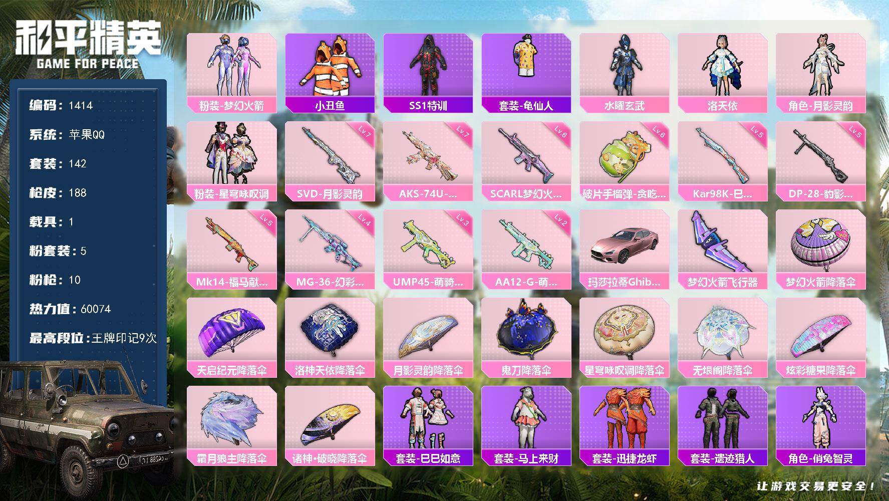 hs41296 苹果微-2王牌印记-0粉装-3特效枪-1载具-24611热力值-35套装-73枪皮
