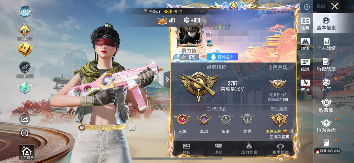 5粉装-4特效枪-0载具-2粉色飞行器-54261热力值-10王牌印记-116套装-176枪皮