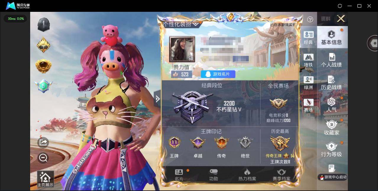 实名: 可修改 时装数: 348 枪械数: 108 战备数: 97 热门装扮: