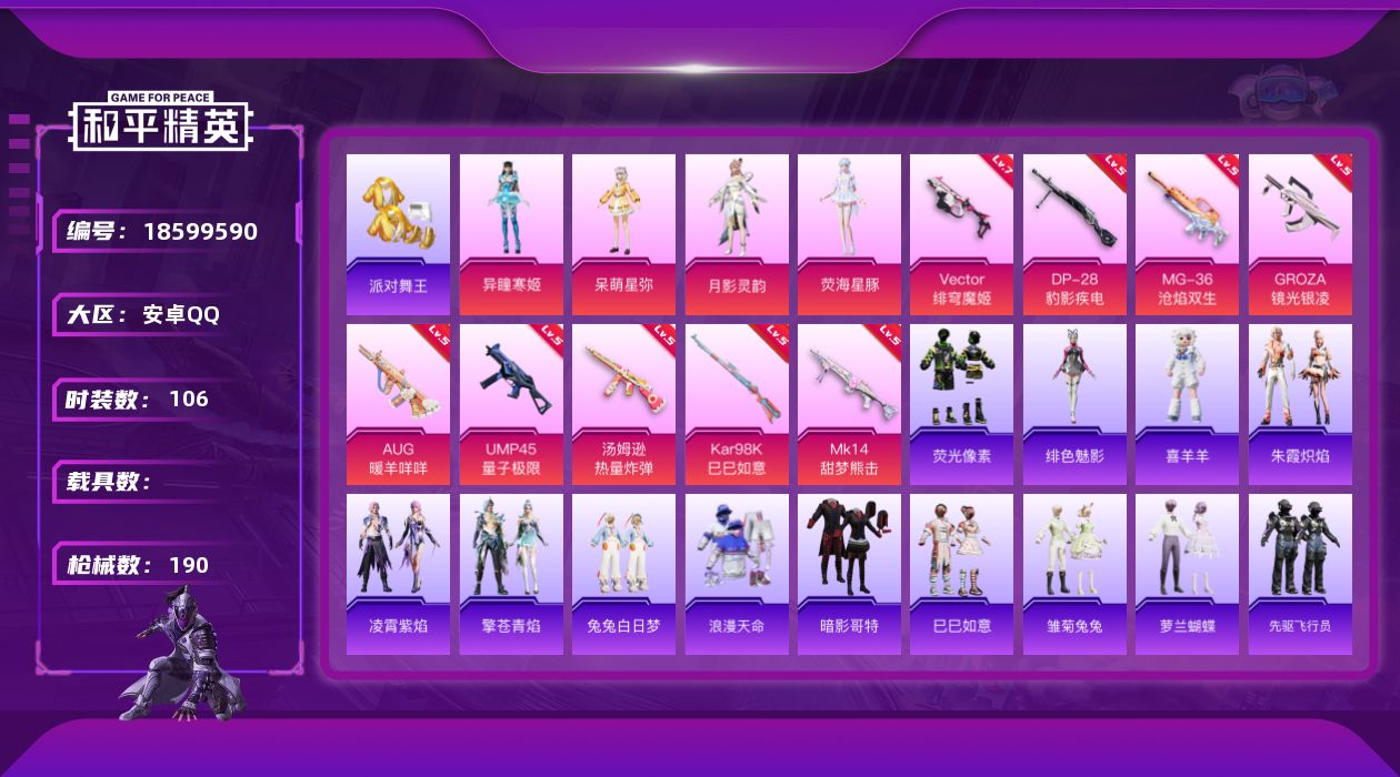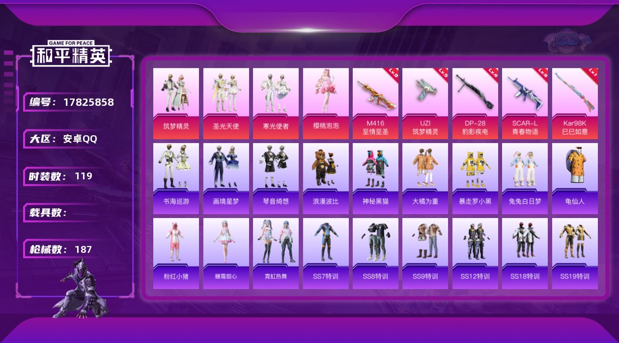 安卓 手Q-2粉装-8特效枪-0载具-0粉色飞行器-29653热力值-2王牌印记