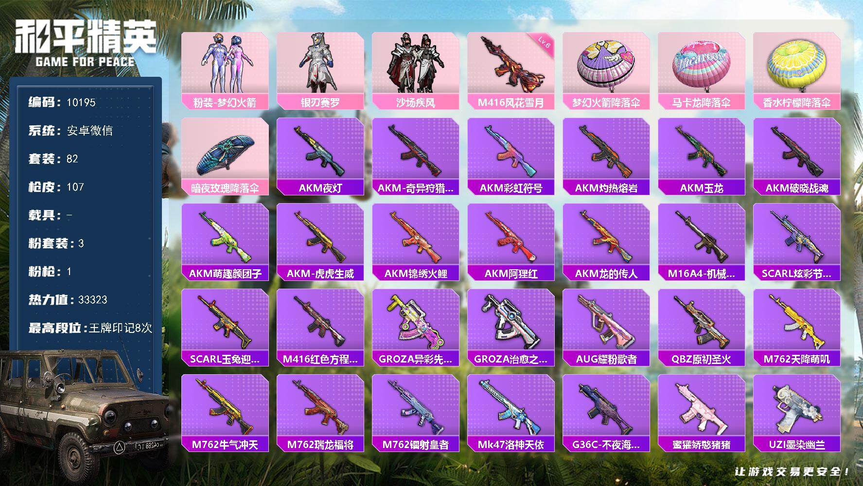 安卓 微信-3粉装-1特效枪-0载具-0粉色飞行器-33323热力值-8王牌印记