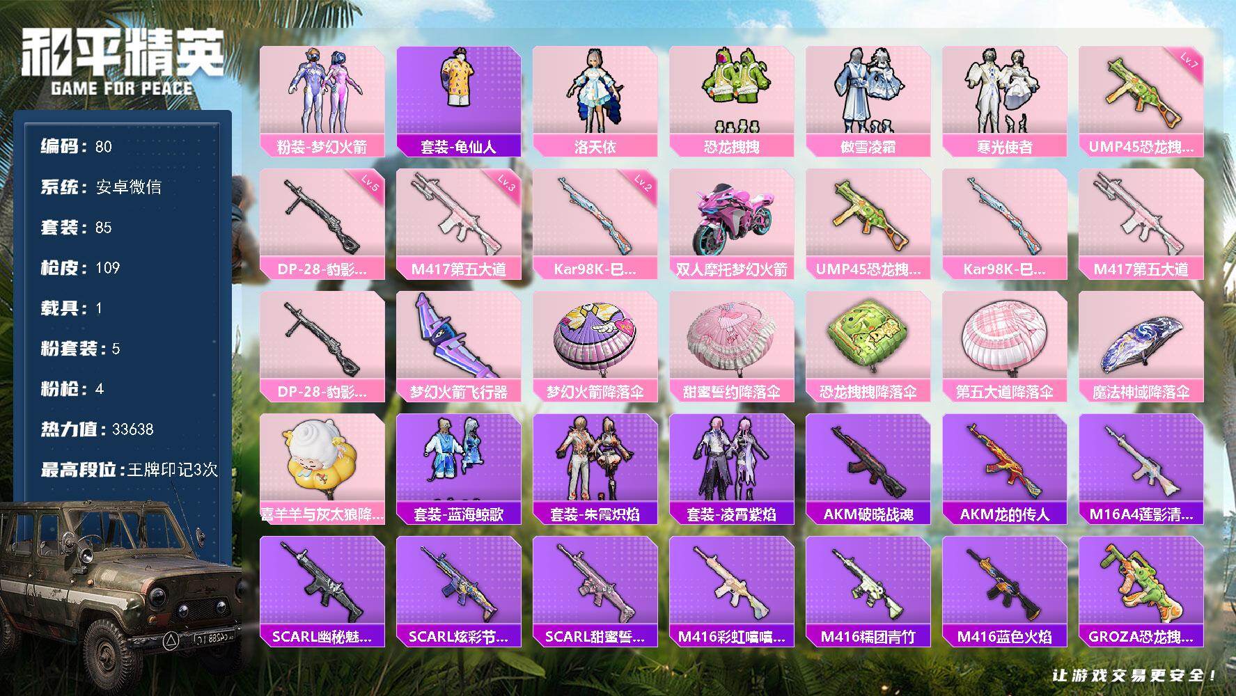 安卓 手Q-3粉装-9特效枪-1载具-0粉色飞行器-35463热力值-7王牌印记