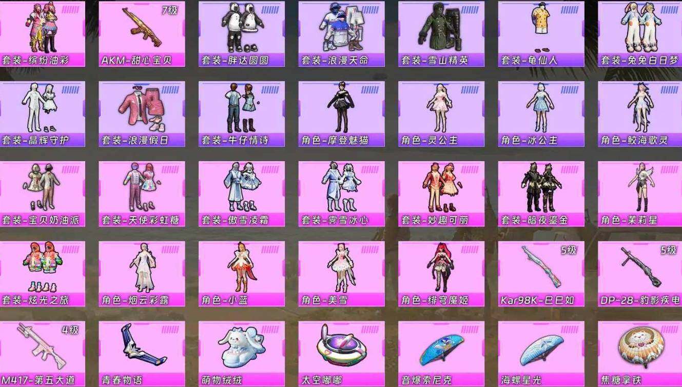 3粉装-9特效枪-1载具-1粉色飞行器-85310热力值-7王牌印记-229套装-298枪皮