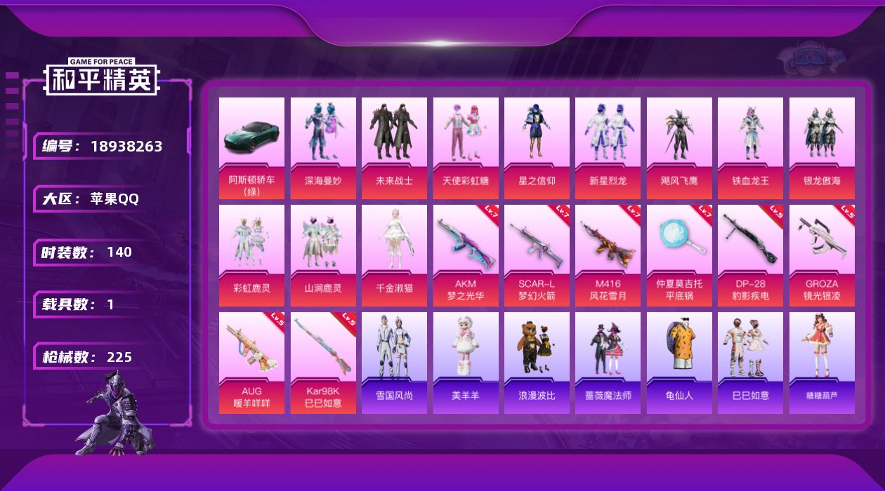 13粉装-6特效枪-2载具-2粉色飞行器-63179热力值-15王牌印记-131套装-189枪皮