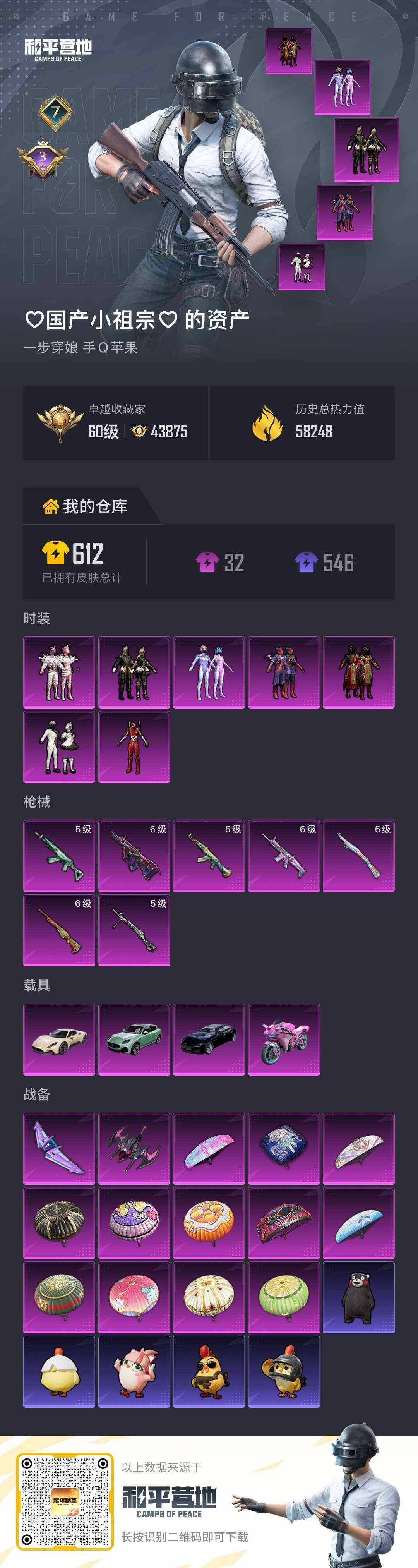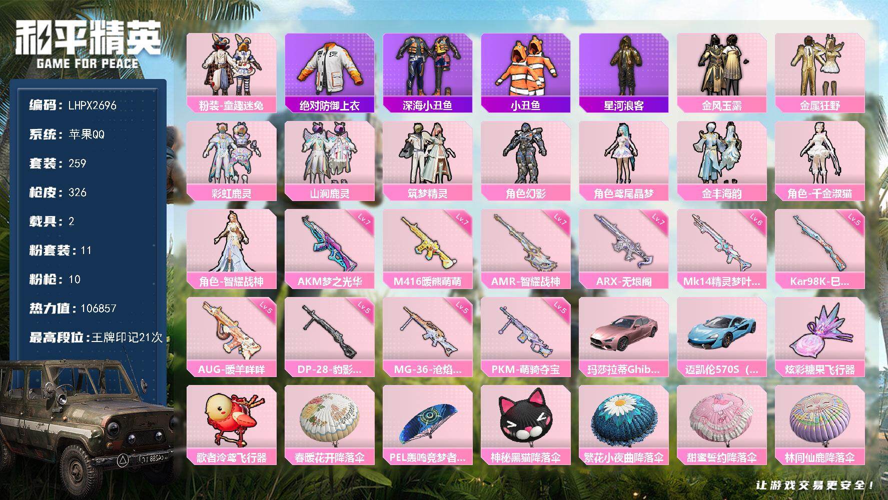 苹果v-3王牌印记-4粉装-6特效枪-2载具-30668热力值-74套装-108枪