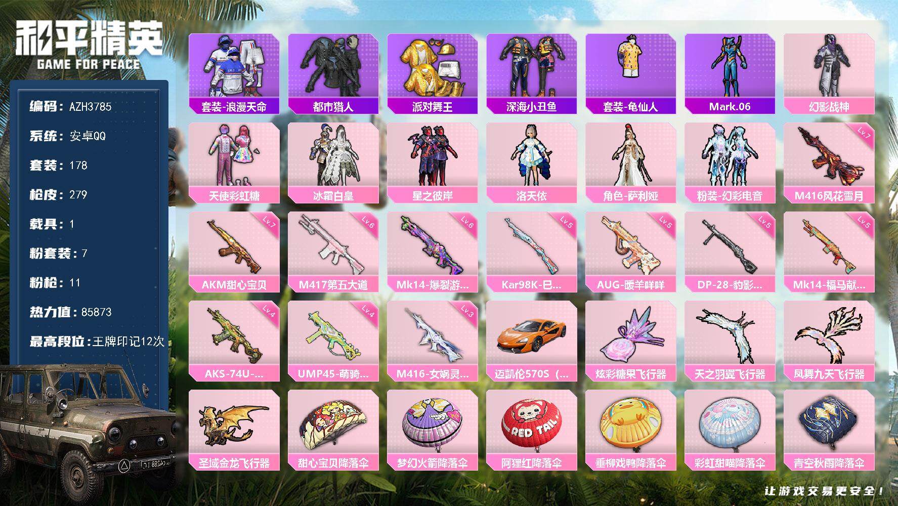 苹果 手Q-6粉装-12特效枪-2载具-4粉色飞行器-66775热力值-10王牌