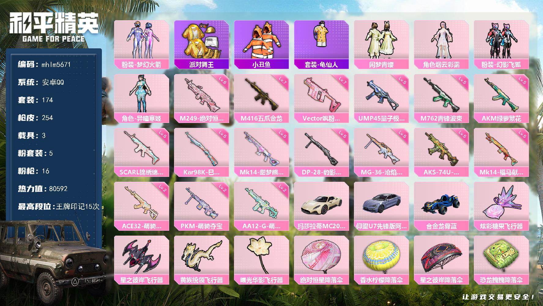 【mhlm5671】安卓 手Q-5粉装-16特效枪-3载具-4粉色飞行器-80