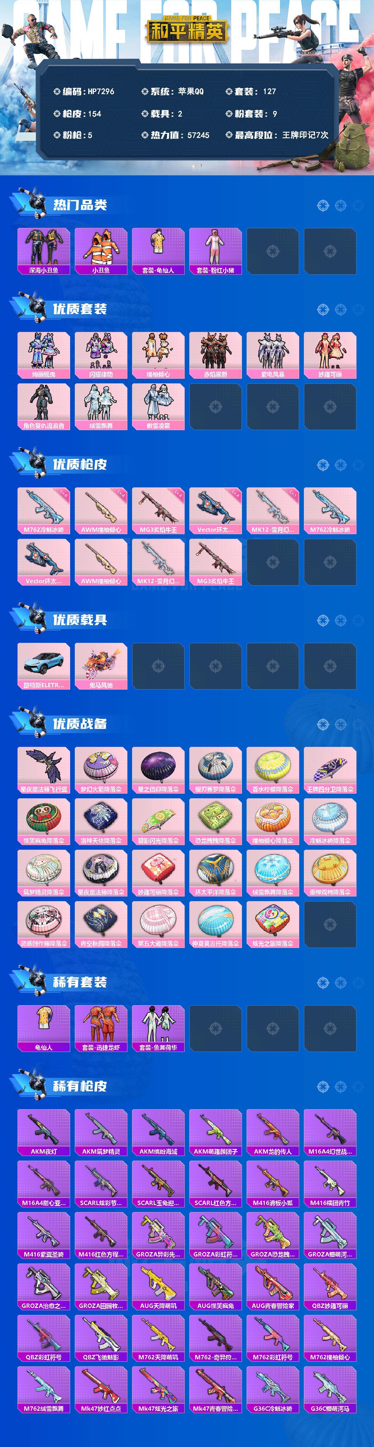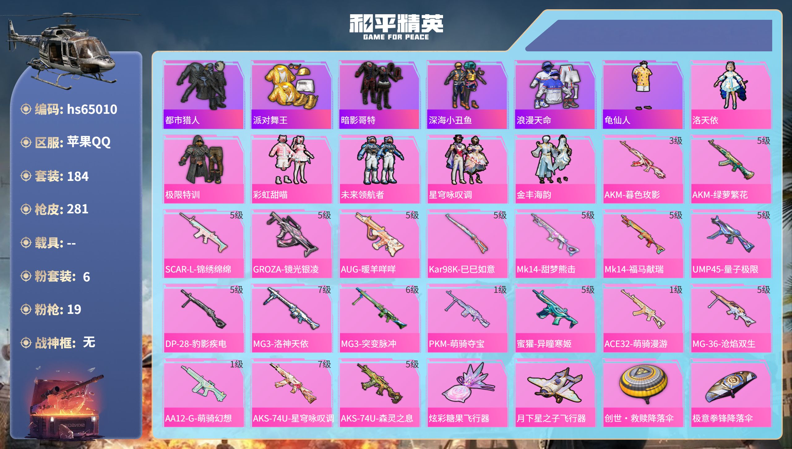 【店主推荐捡漏号!可直接换绑】苹果 手Q-4粉装-9特效枪-3载具-5粉色飞行