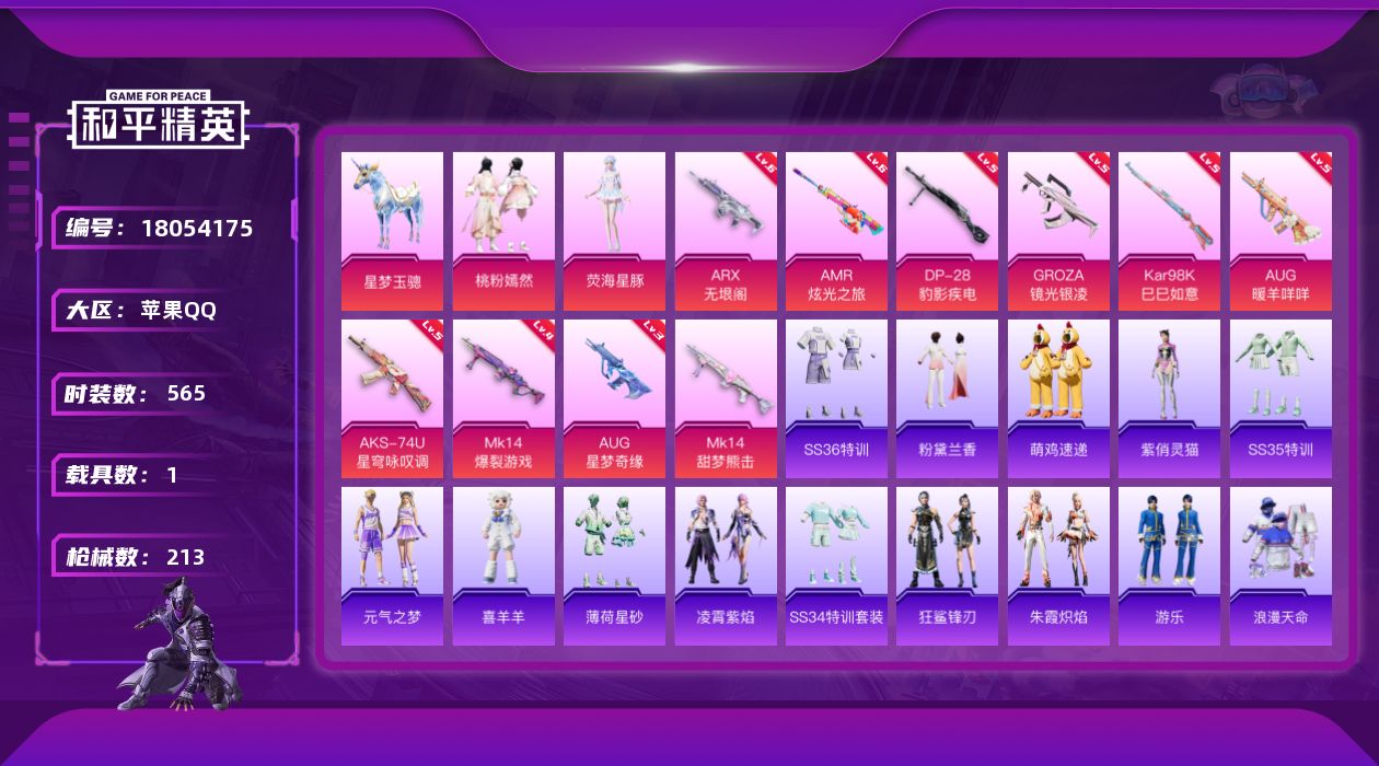 1载具-143套装-213枪皮-AUG-星梦奇缘3级 1稀有1载具2粉装14特效