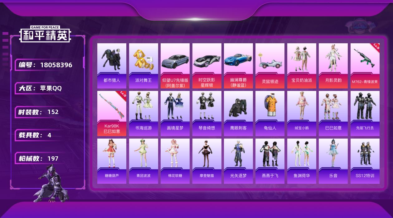 87套装/枪械7/装备138/载具3/战备83/王牌印记3/热力值39361/