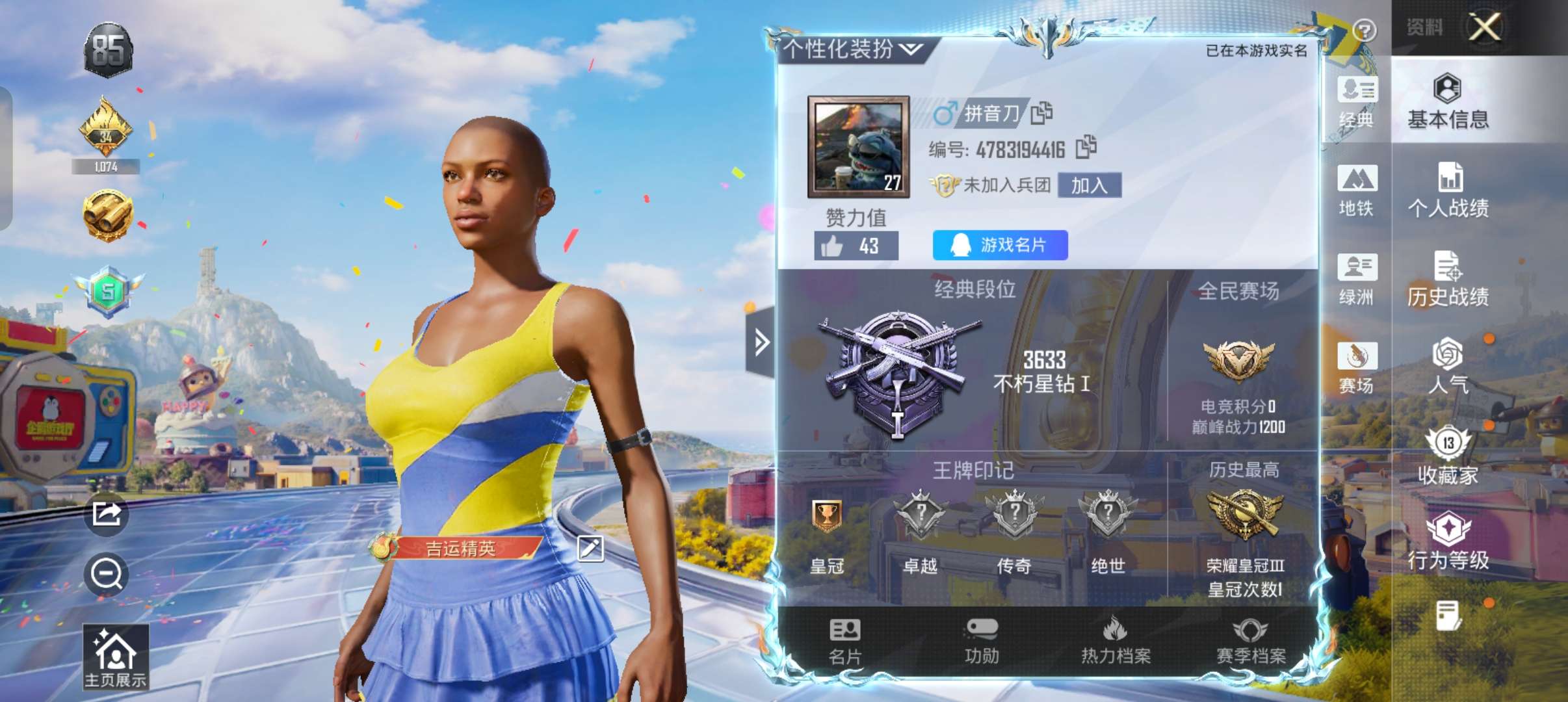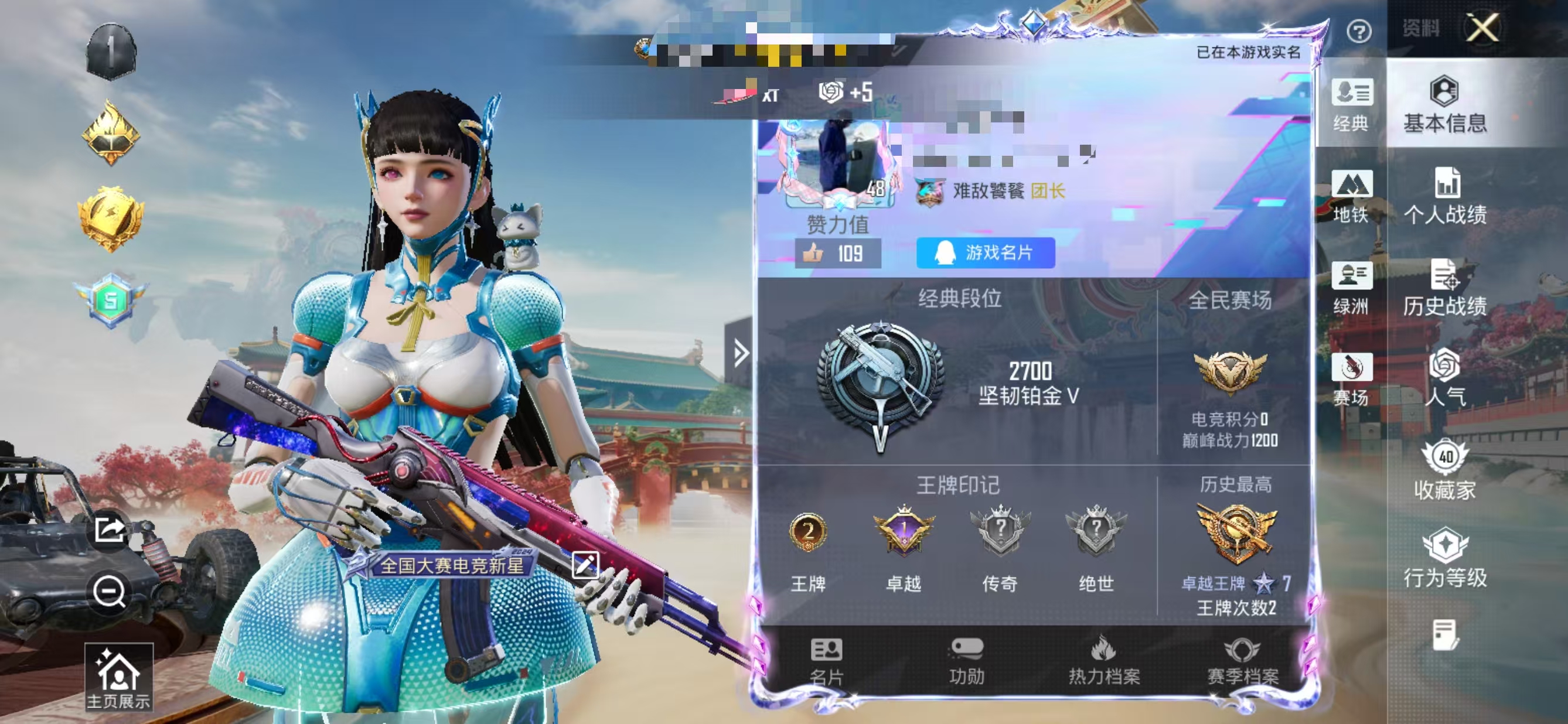 33套装/枪械5/装备42/战备31/王牌印记2/热力值11051/五级ACE