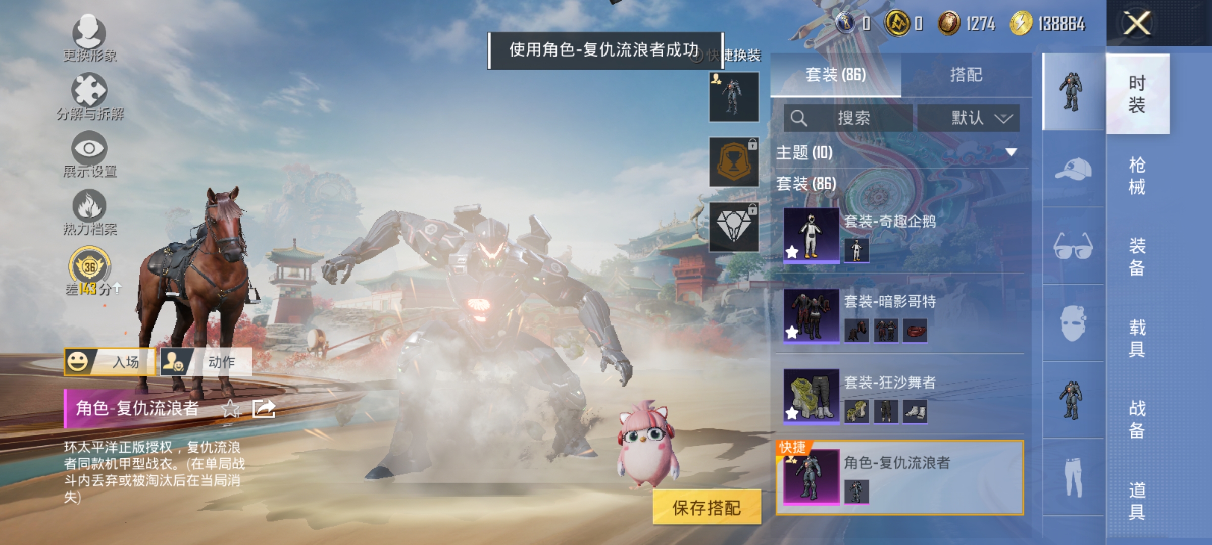 1粉装-5特效枪-1粉色飞行器-27292热力值-7王牌印记-76套装-112枪皮