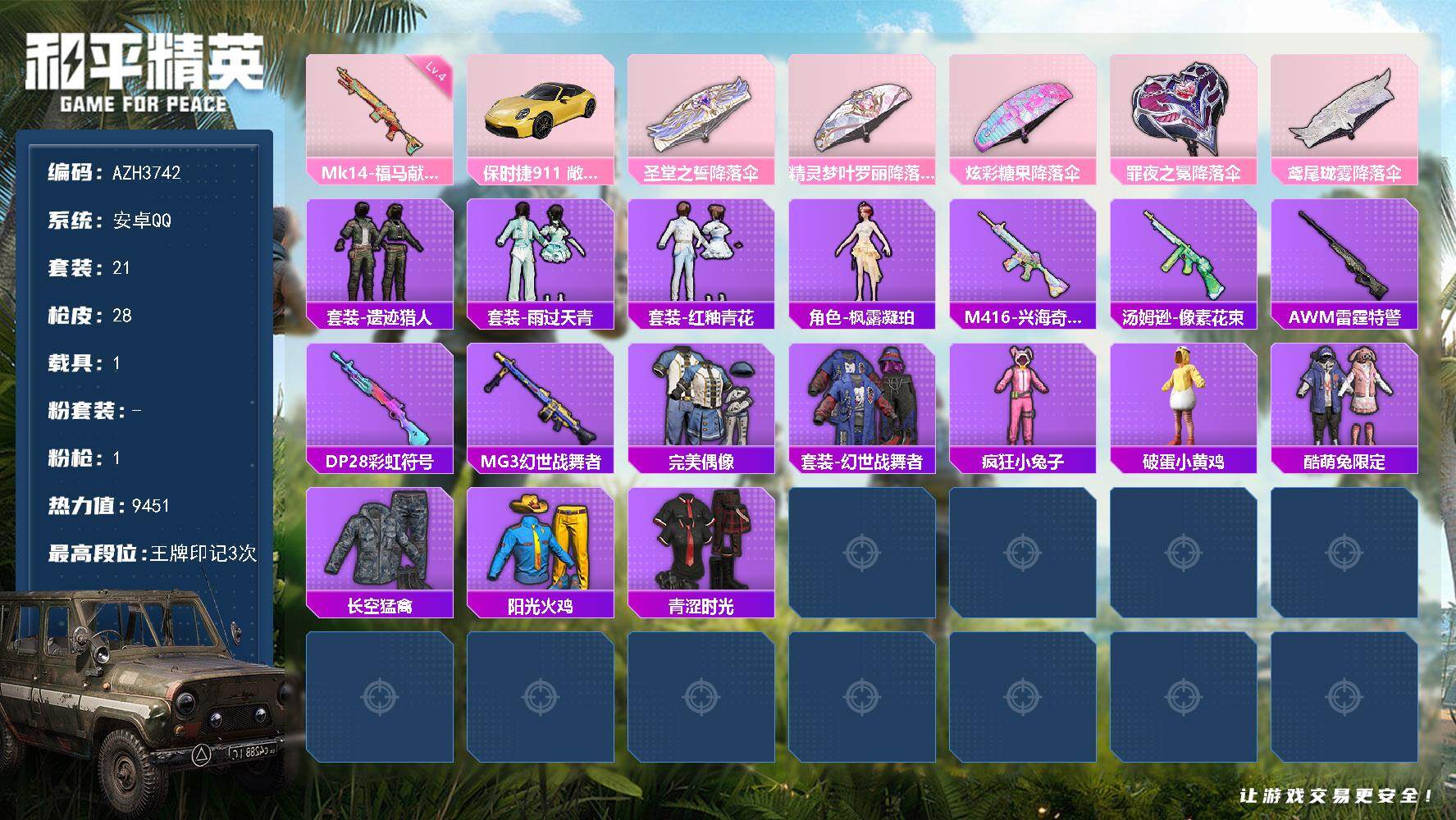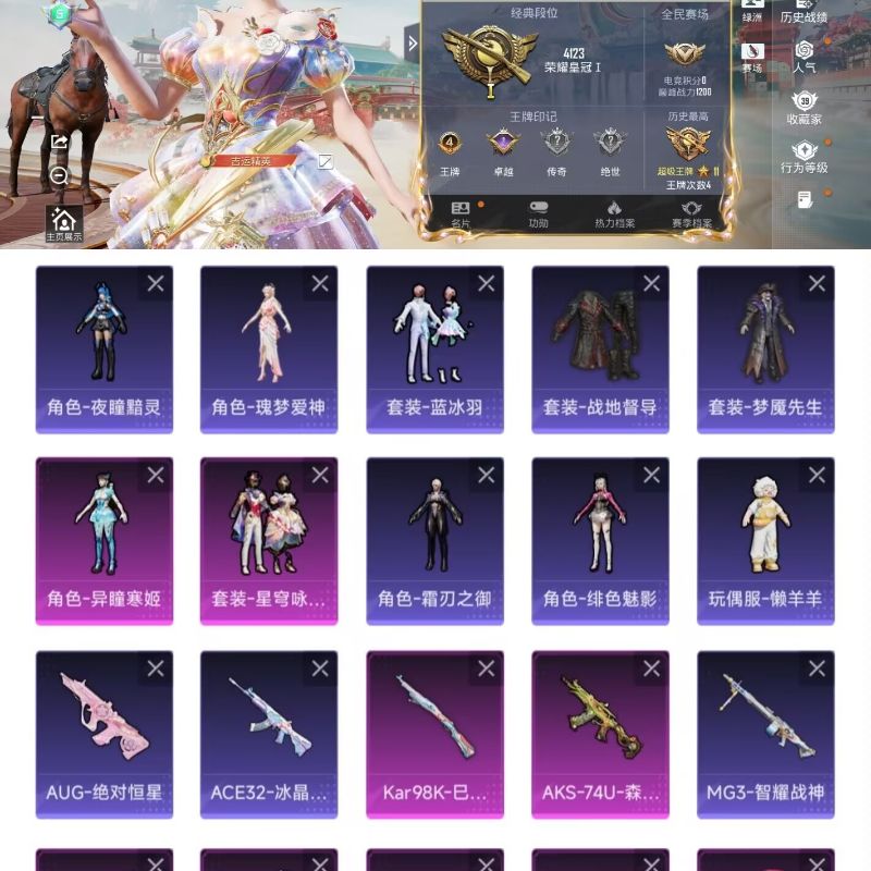 安卓 手Q-1粉装-5特效枪-0载具-1粉色飞行器-41694热力值-1王牌印