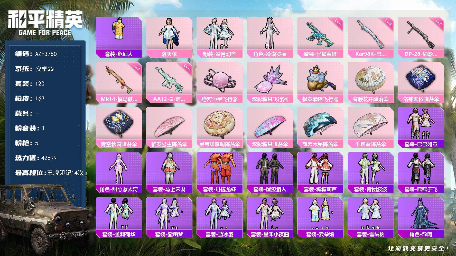 【AZH3780】安卓手Q-3粉装-5特效枪-3粉色飞行器-42699热力值-