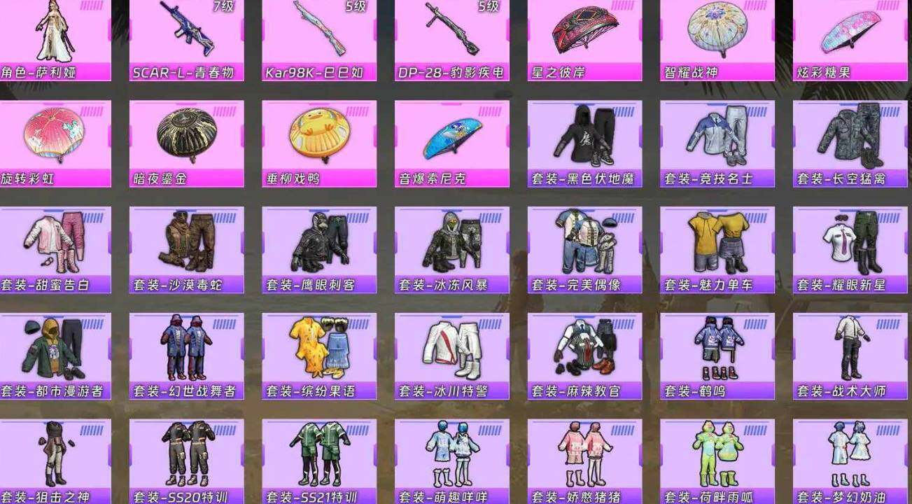 1粉装5特效枪2热门40套装90枪皮 4印记 历史超级王牌14星