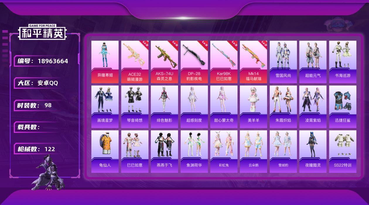 ]98套装/枪械5/装备124/战备71/王牌印记5/热力值3