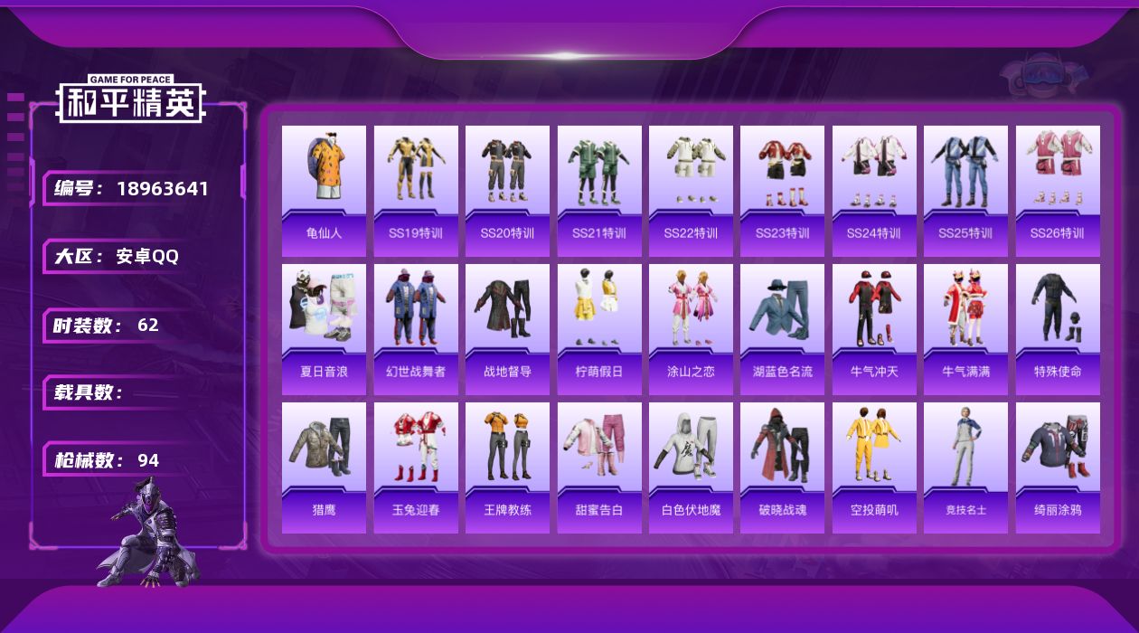 安卓 手Q-1粉装-2特效枪-0载具-0粉色飞行器-10745热力值-0王牌印