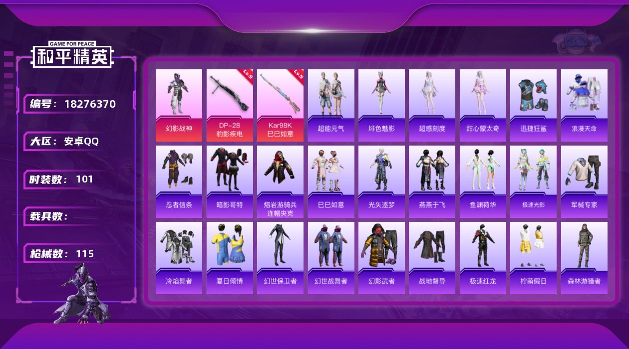 115套装/枪械6/装备156/战备105/王牌印记4/热力值40093/五级S