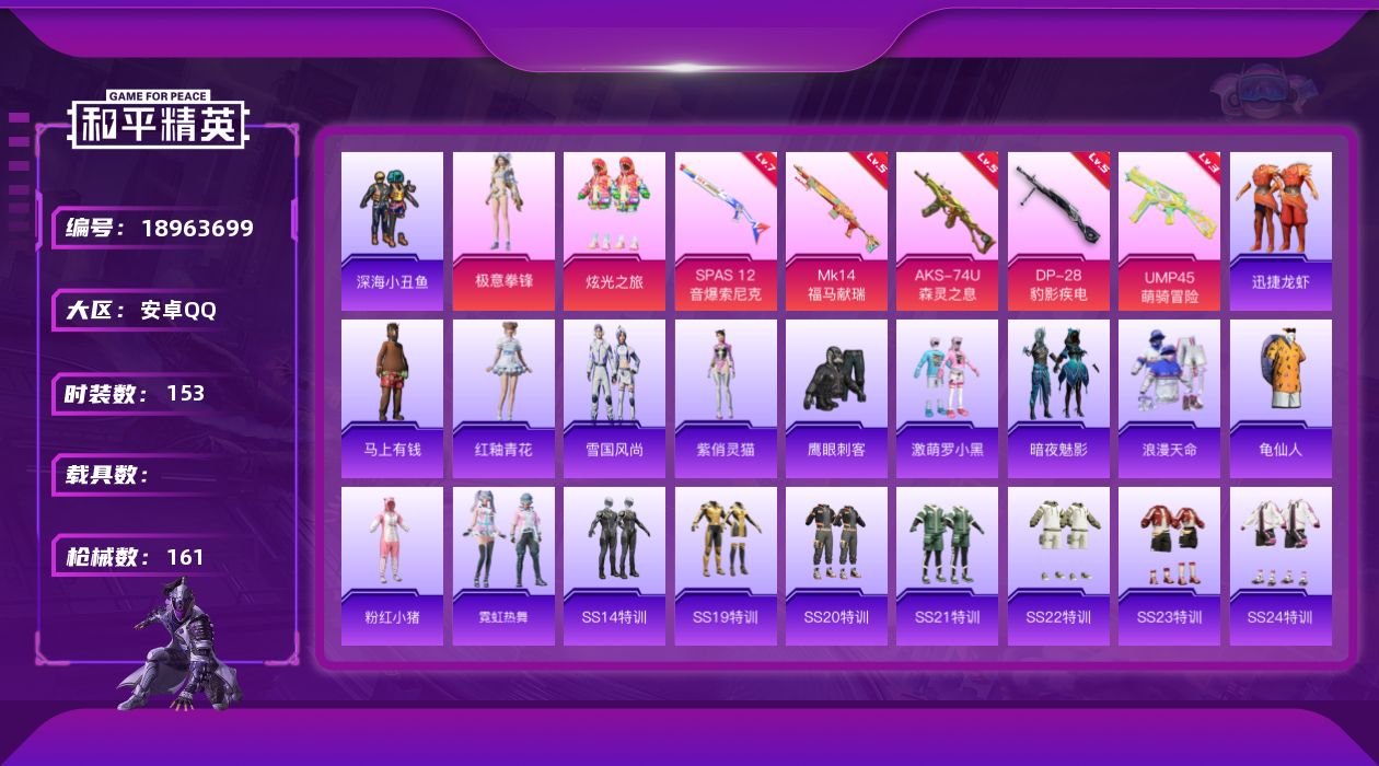 安卓 手Q-3粉装-3特效枪-0载具-2粉色飞行器-52372热力值-2王牌印