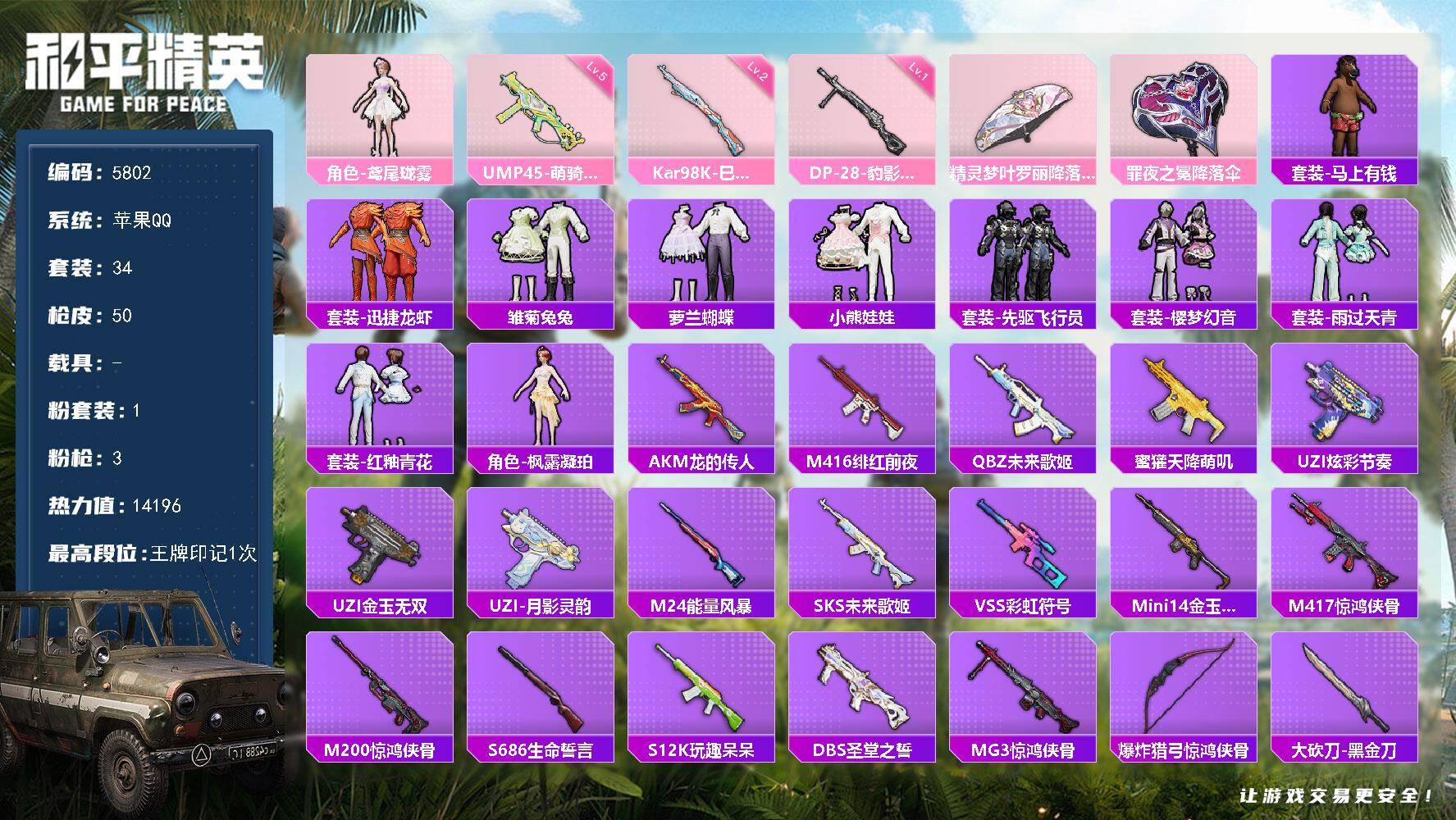 【5特效枪1粉装 秒换绑不用等】 苹果Q区-27275热力值-43套装-112