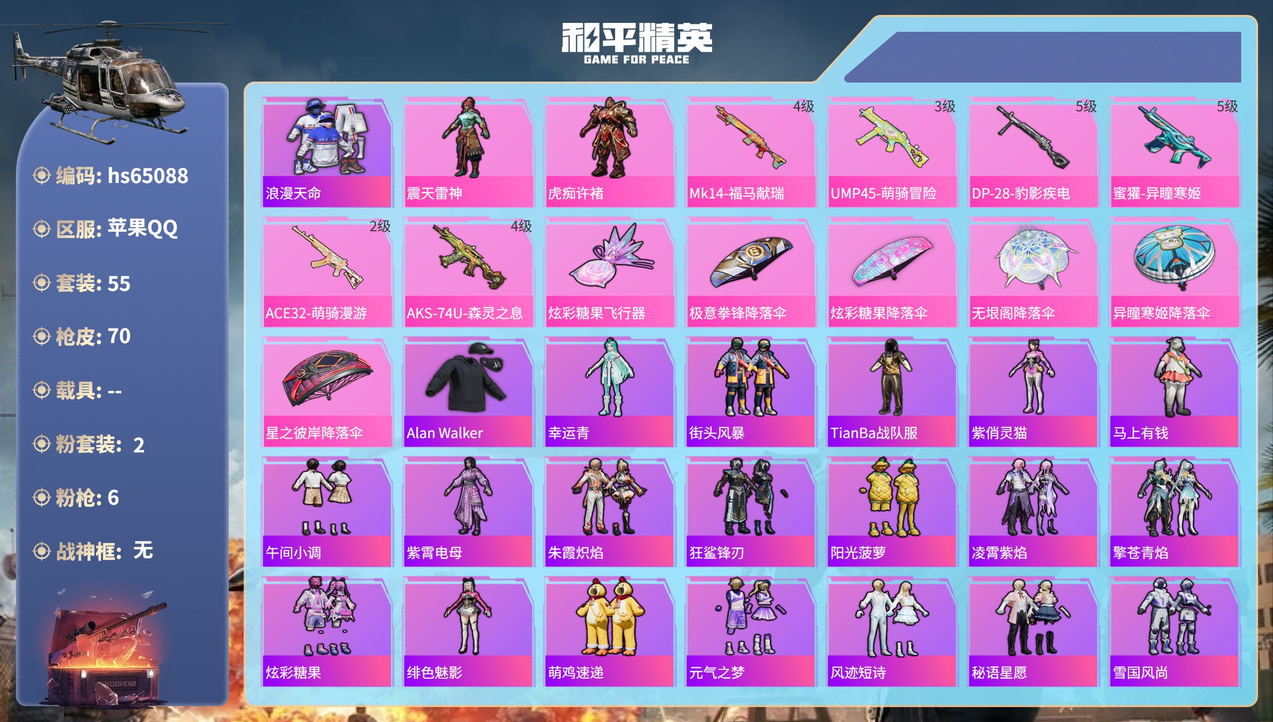 可二次【4特效枪3粉装 秒换绑不用等】 苹果Q区-46940热力值-96套装-1