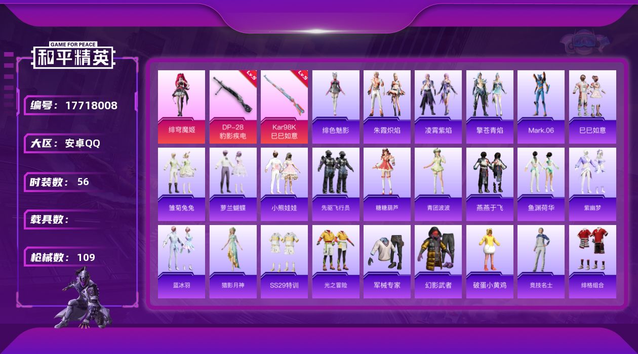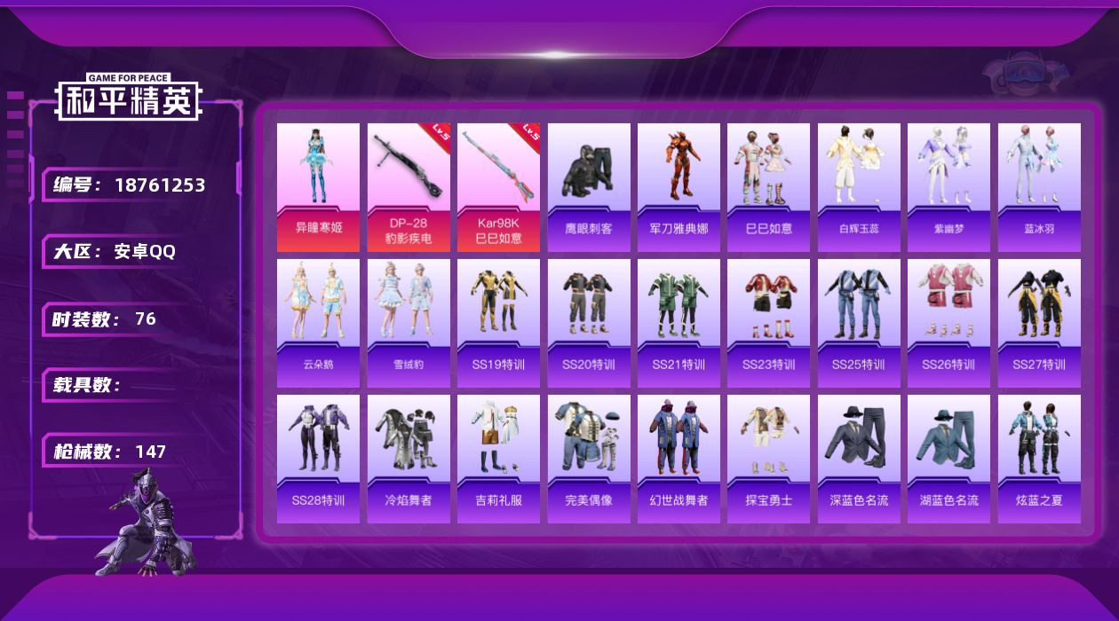 安卓 手Q-1粉装-6特效枪-0载具-1粉色飞行器-21797热力值-1王牌印