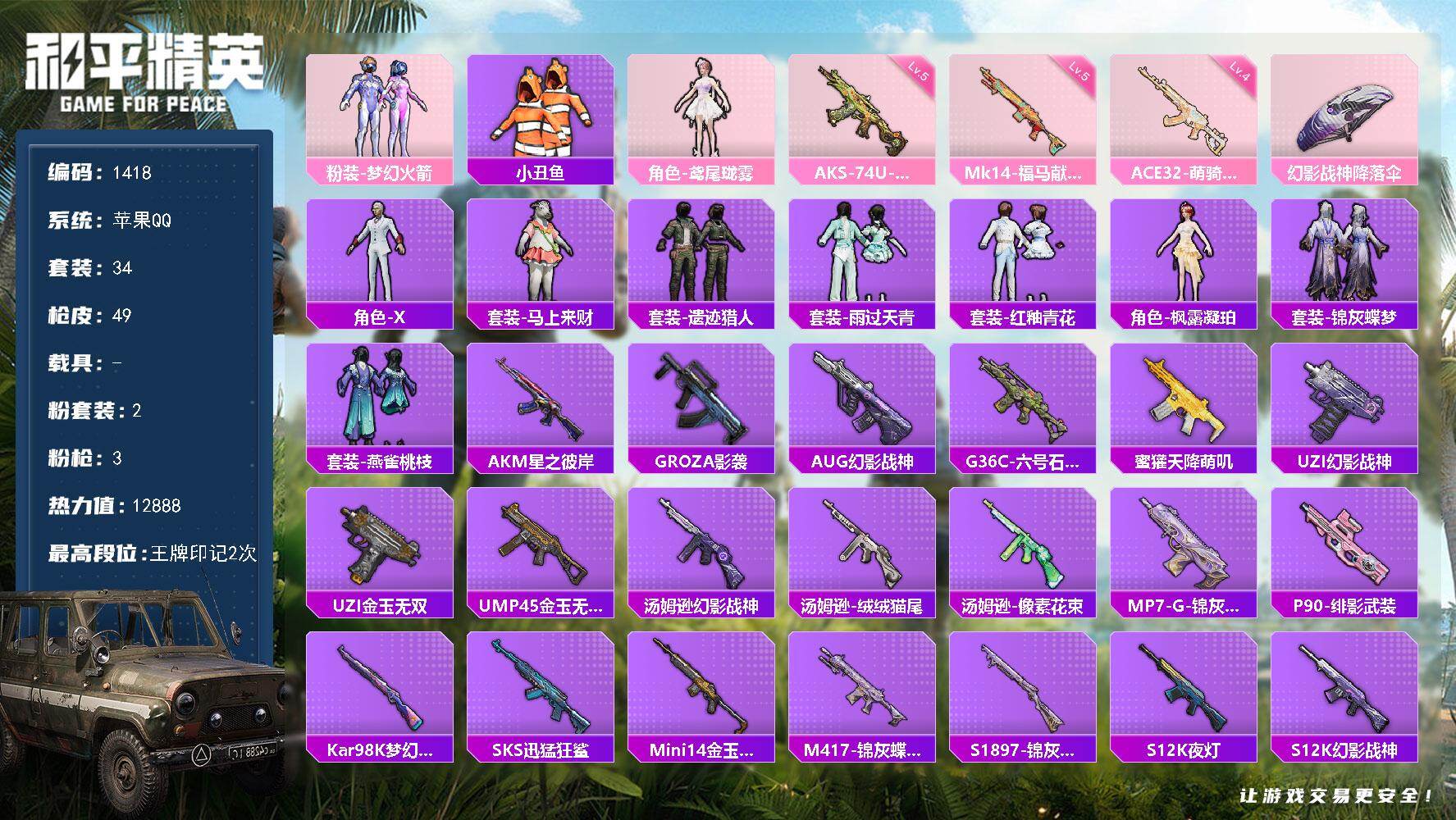【4粉枪2粉枪 小丑鱼 奇异狩猎者】安卓 手Q-2粉装-4特效枪-0载具-0粉