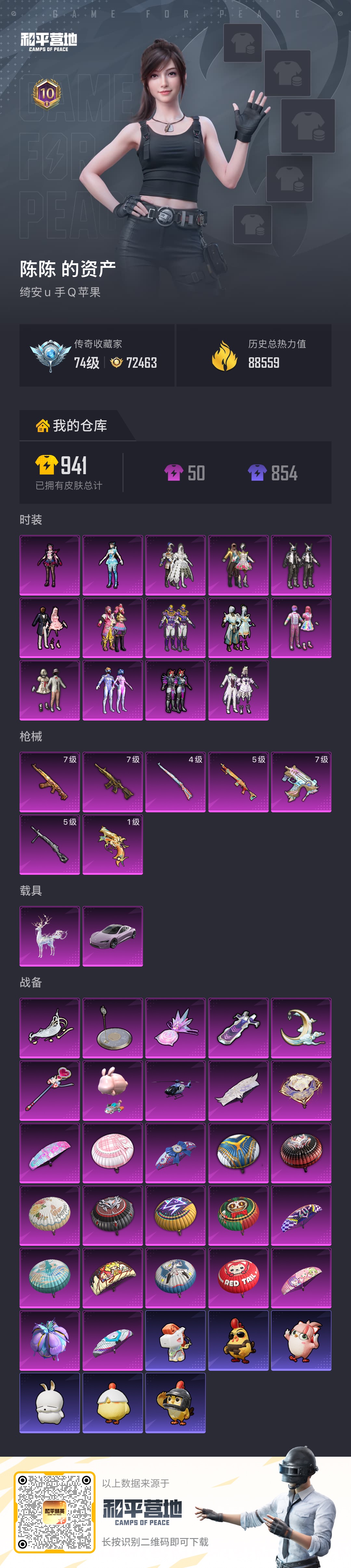 火箭少女,背包500多扭蛋碎片,5把升级枪,一个车皮,