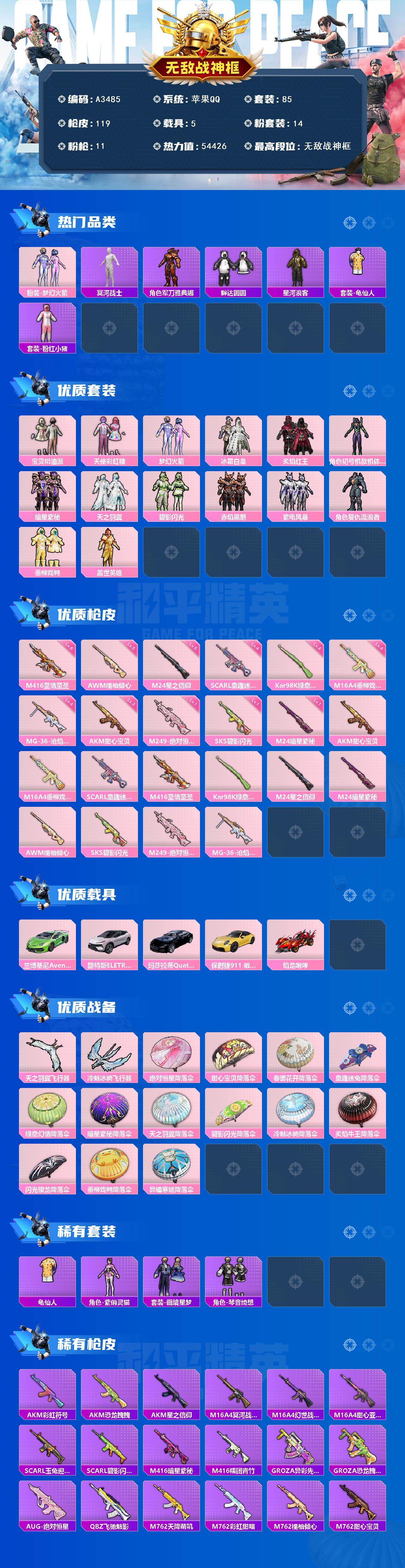 hs58064 苹果手Q-18王牌印记-8粉装-7特效枪-2载具-98838热力值-203套装-31