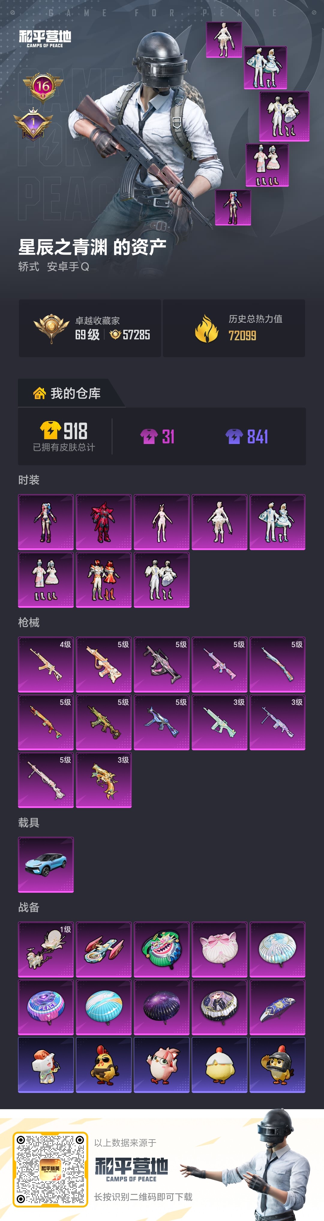 王者和平,QQ飞连体,王者511皮肤5典藏3无双2珍品40传说,和平一红装15粉状22粉枪1载