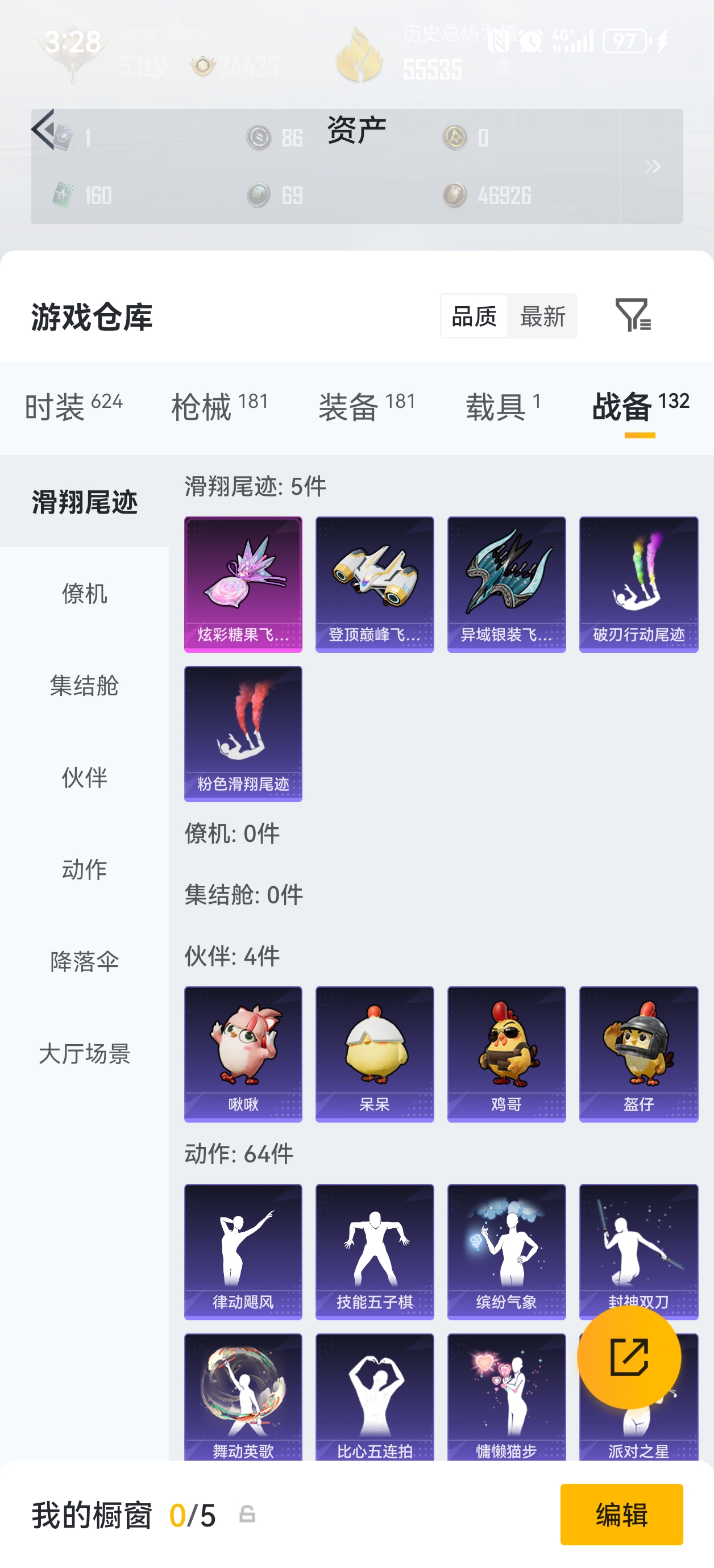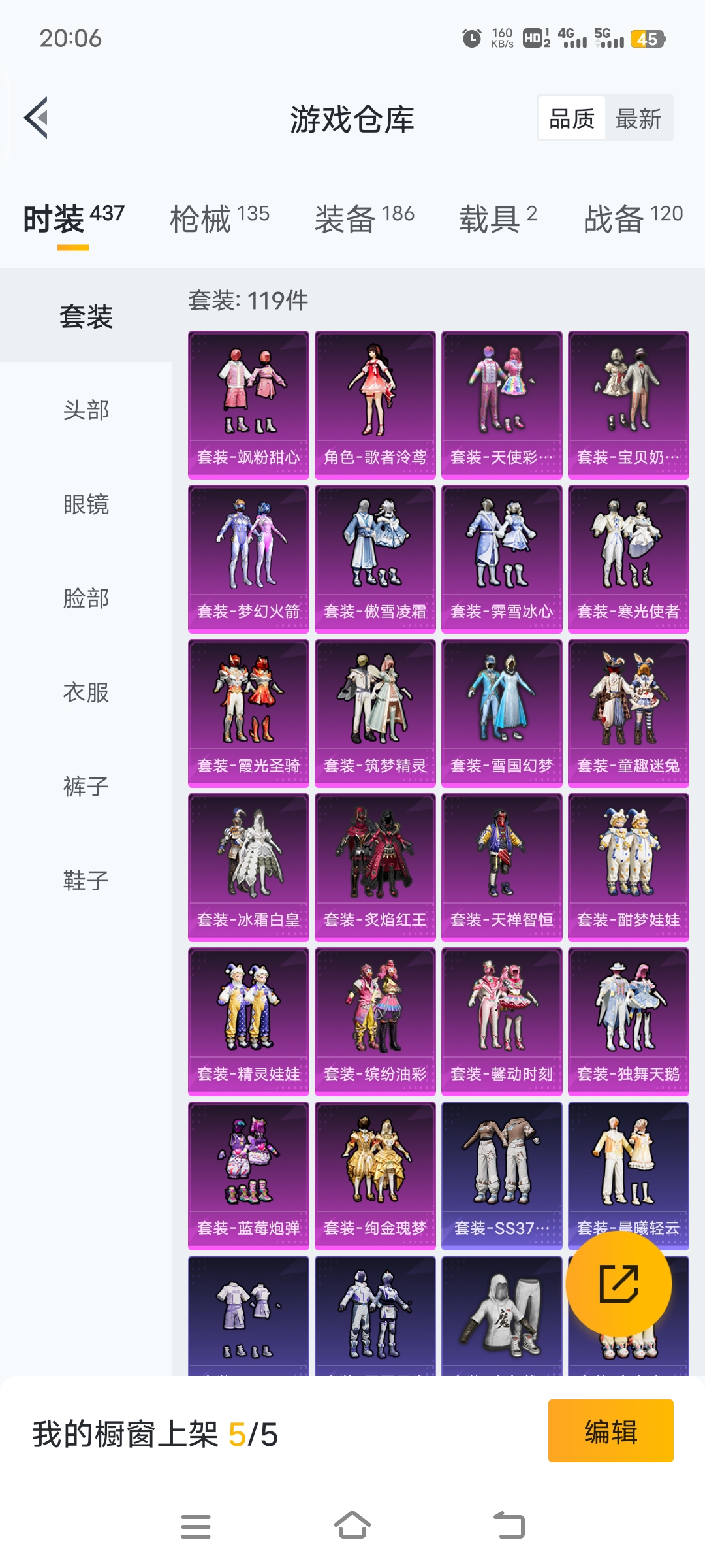 时装数: 551 载具数: 1 枪械数: 180 战备数: 129 热门装扮: