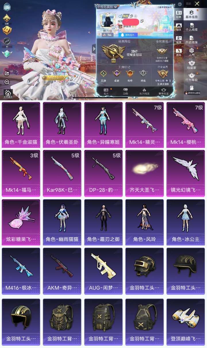 白菜价公主号【12粉装-6粉枪-0载具-4珍稀飞行器-165套装-184枪皮】热力值:61833