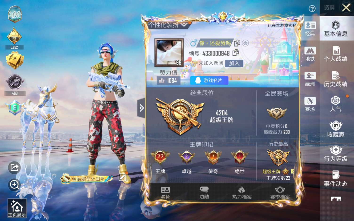 实名: 可修改 时装数: 128 枪械数: 31 战备数: 25 热门装扮: