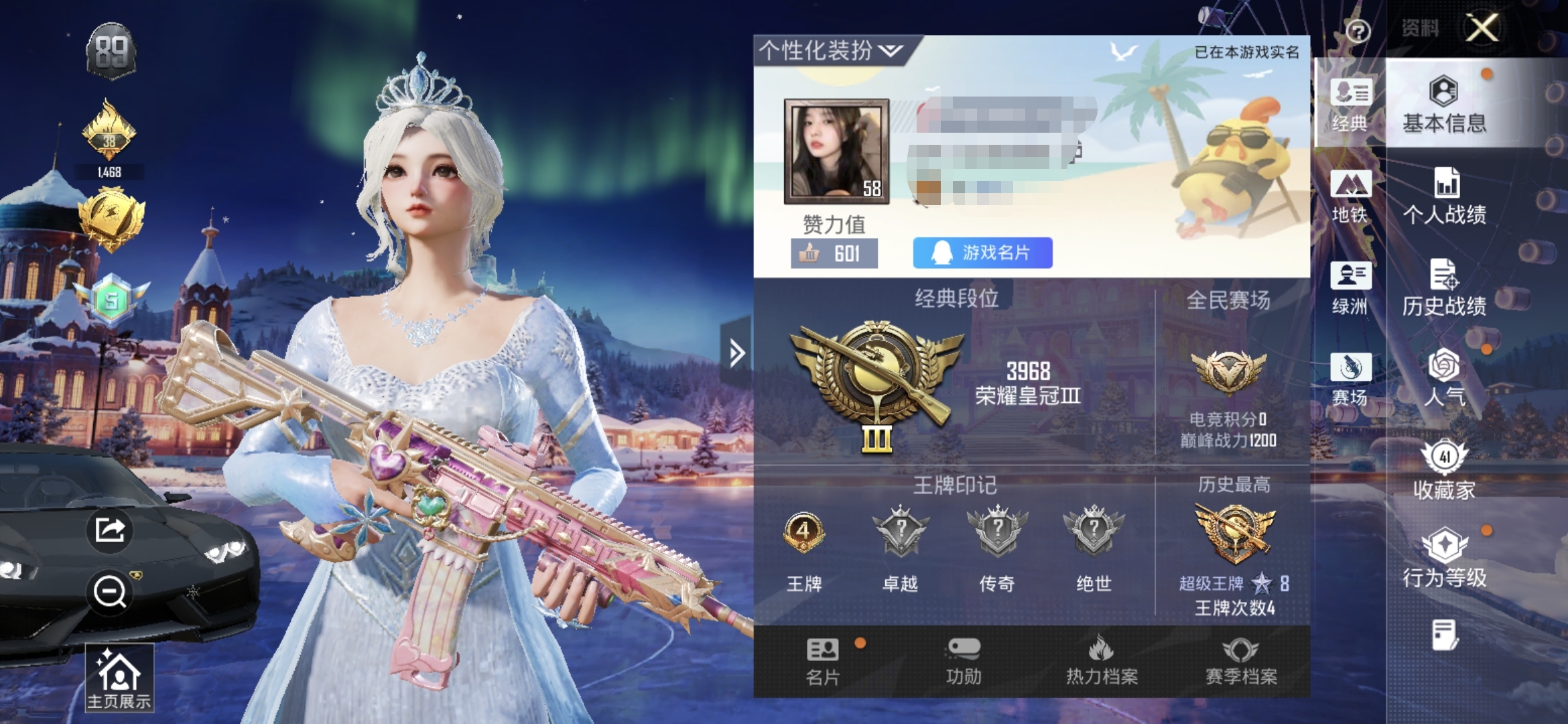 3载具-3粉装-4特效枪-107套装-120枪皮-6王牌印记-荣耀皇冠Ⅰ-43608热力值