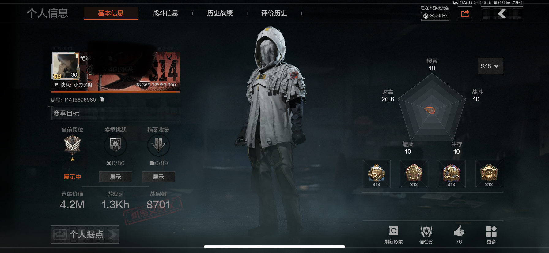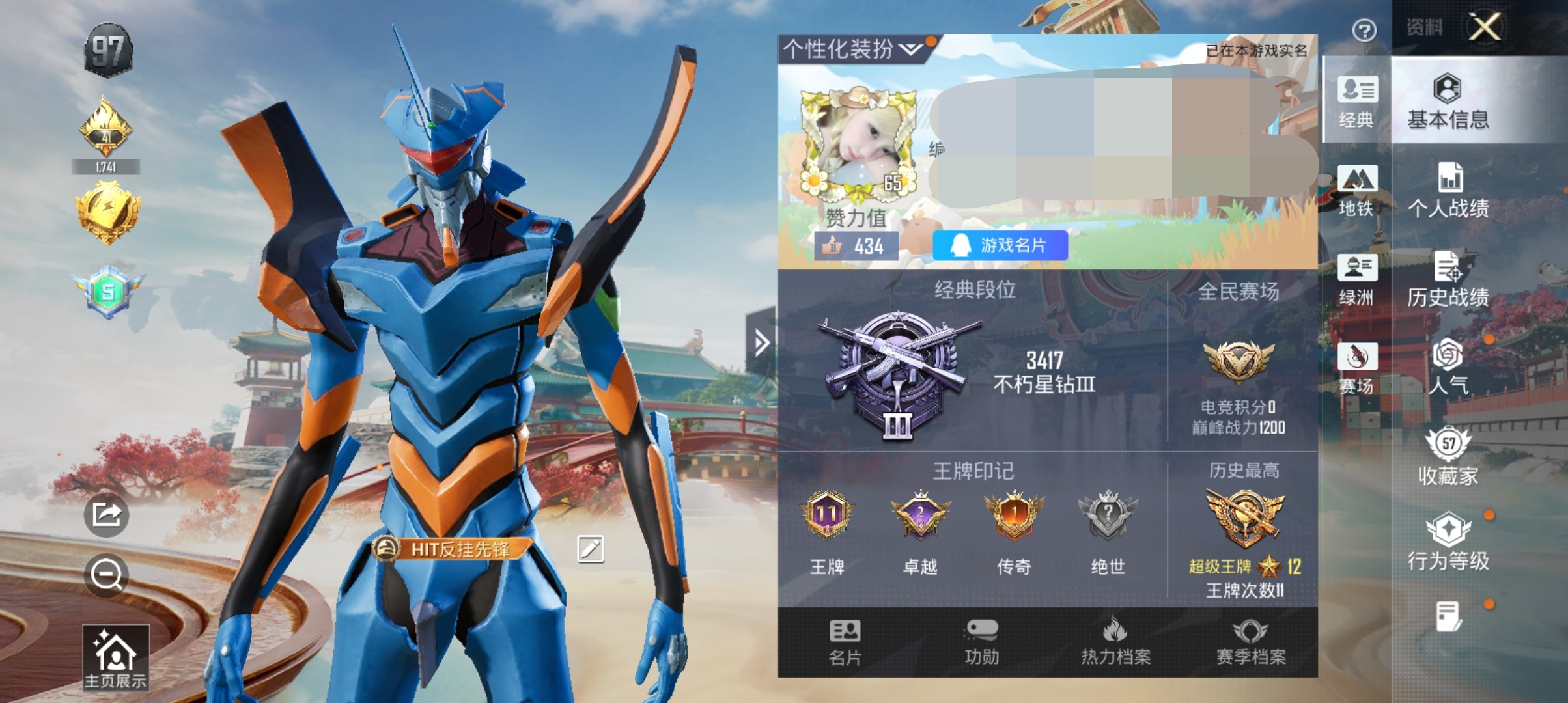 1载具5粉装2特效枪10热门64套装91枪皮 31976热力值 4印记 历史超级王牌8星