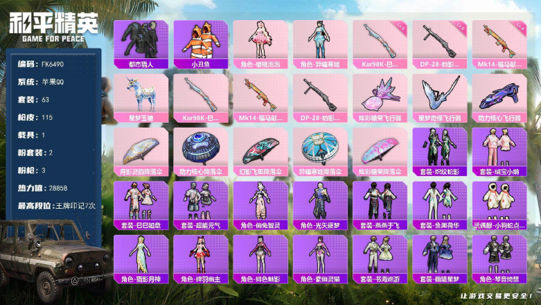 【FK6490】63套装/枪械3/装备129/载具1/战备71/王牌印记7/热