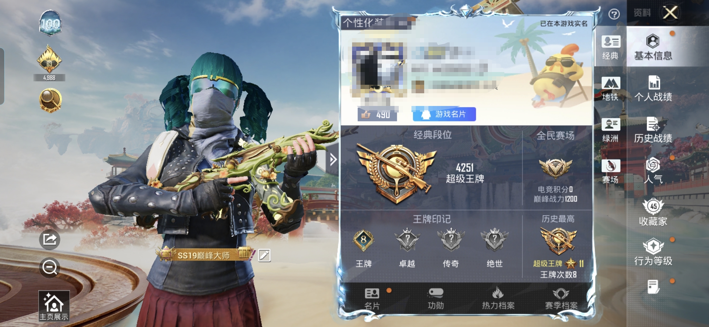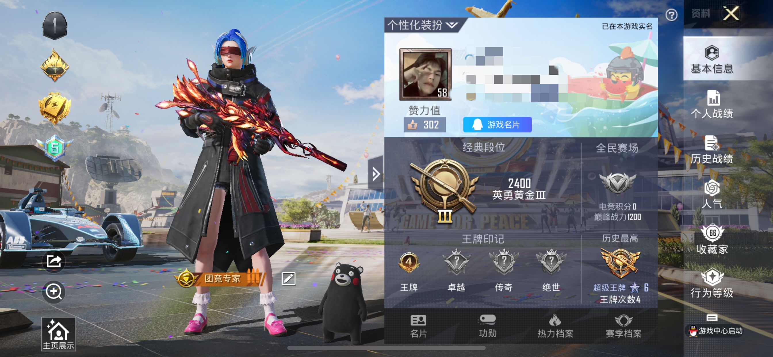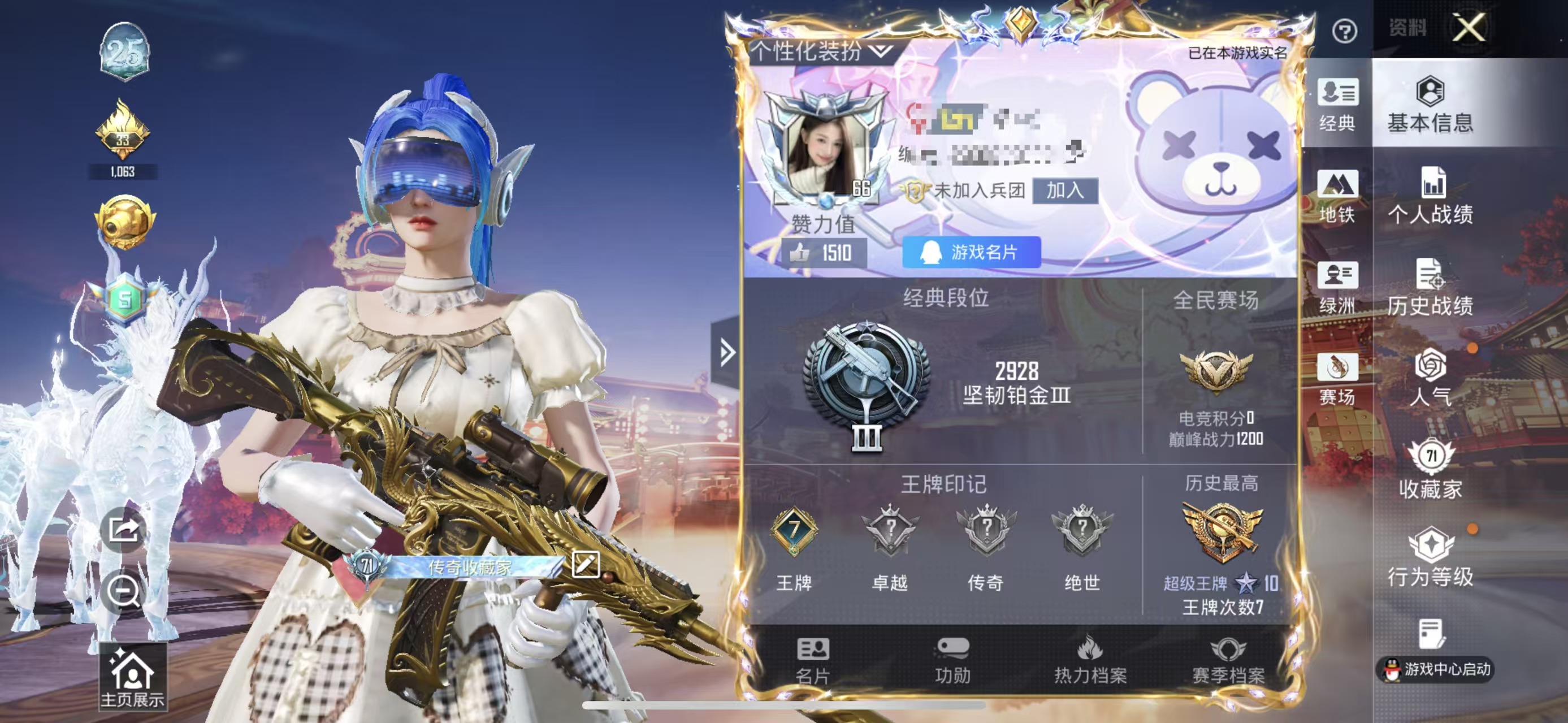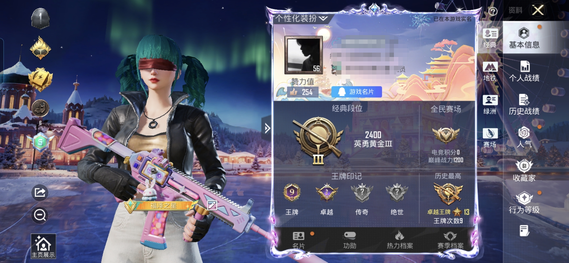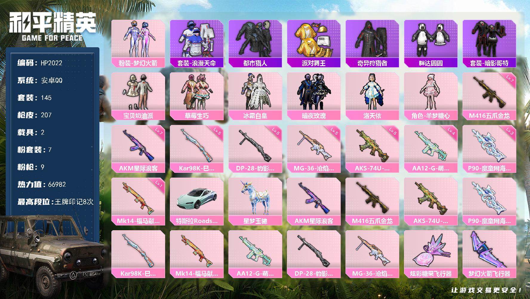 145套装/枪械9/装备241/载具2/战备139/王牌印记8/热力值66982/