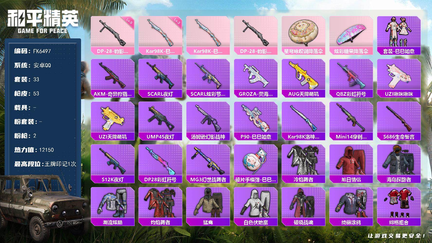【FK6497】33套装/枪械2/装备42/战备28/王牌印记1/热力值121