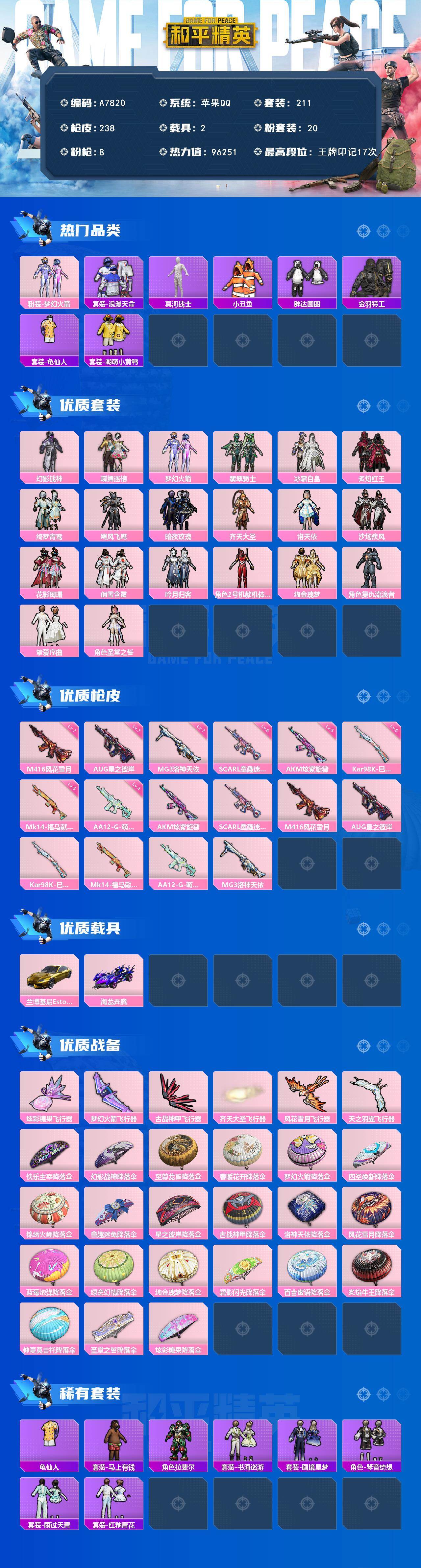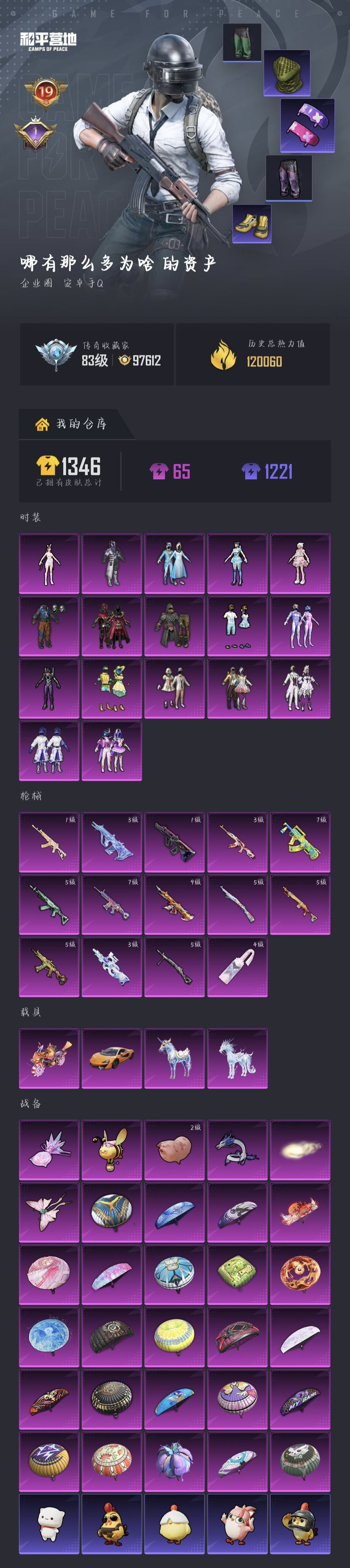 23王牌印记-8粉装-6特效枪-1载具-97794热力值-251套装-295枪皮-1卓越印记