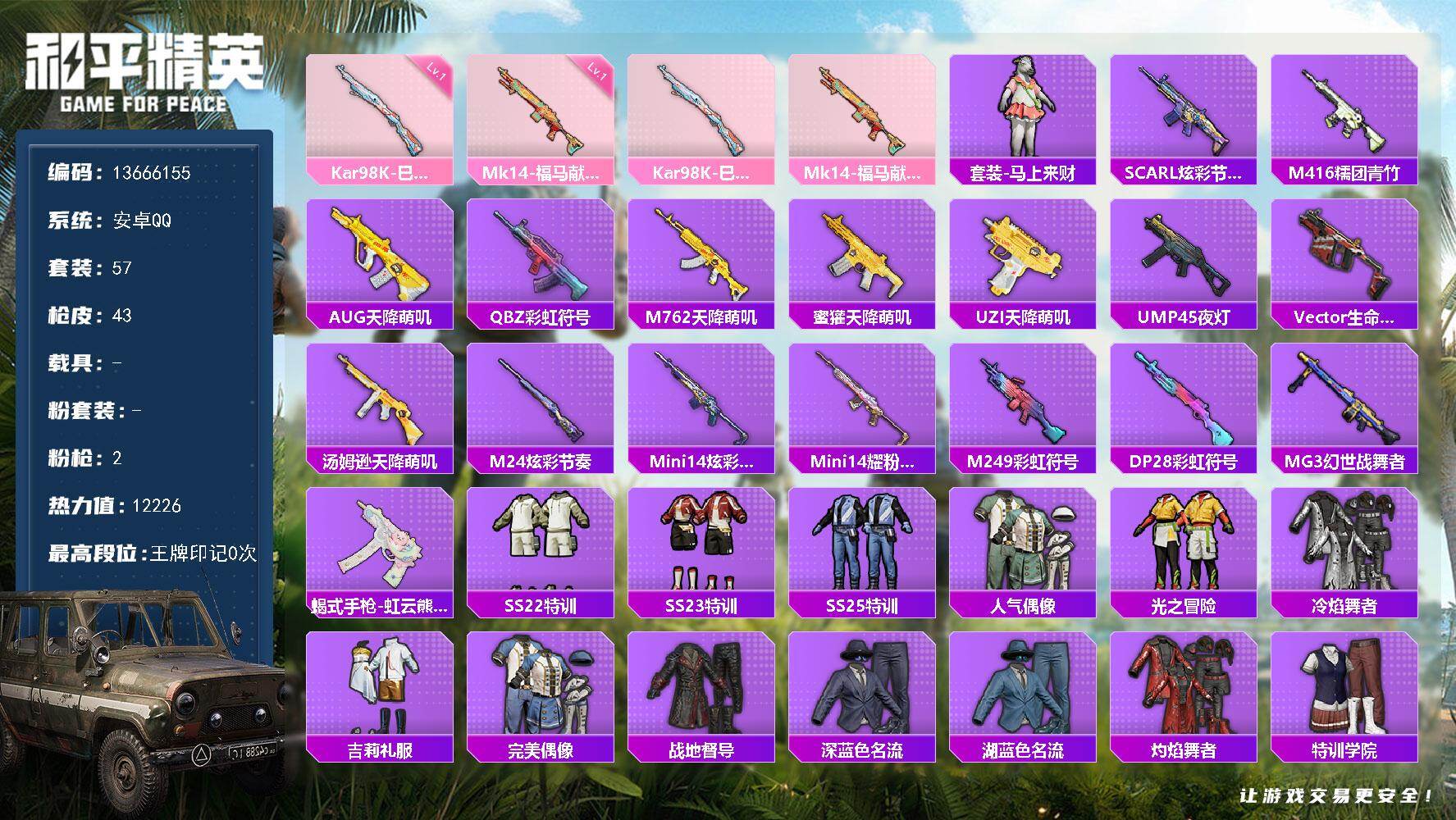 安卓手V-1载具-1粉装-2特效枪-套装21-枪皮29-1王牌印记-王牌12星【
