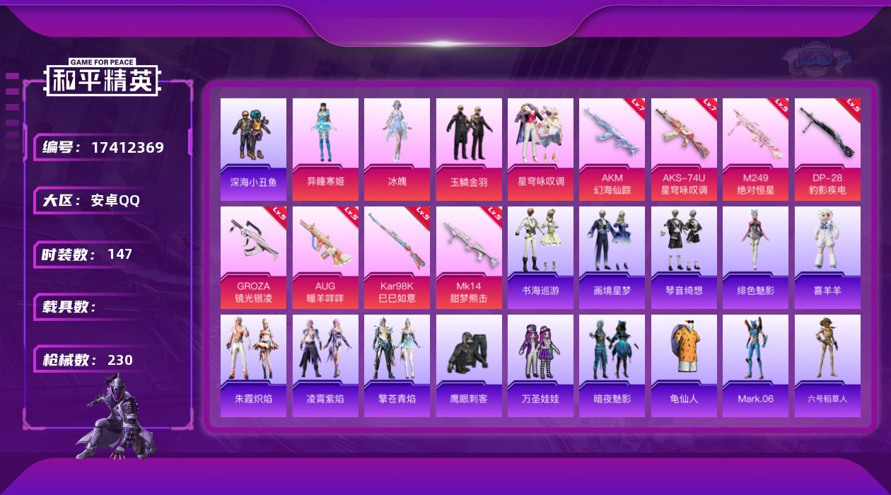4粉装-9特效枪-0载具-3粉色飞行器-69723热力值-14王牌印记-147套装-230枪皮
