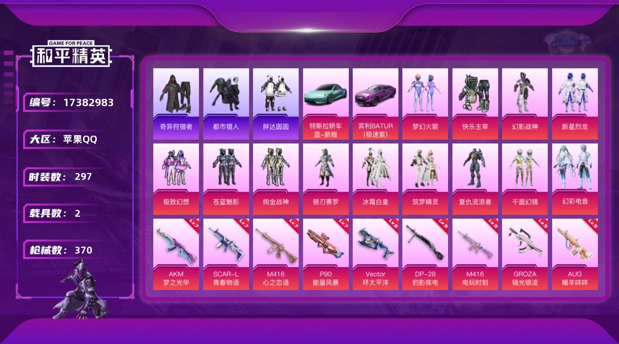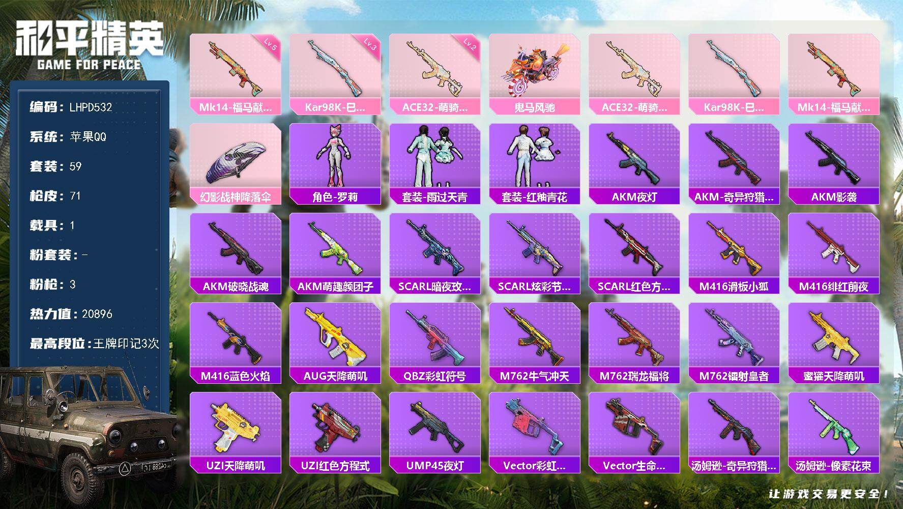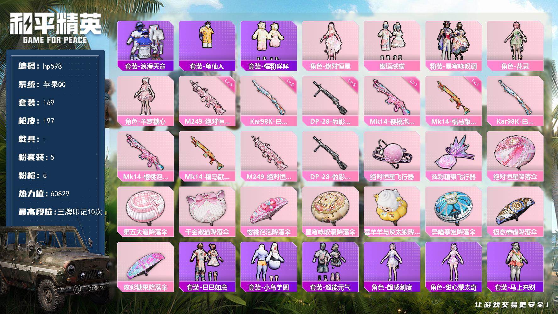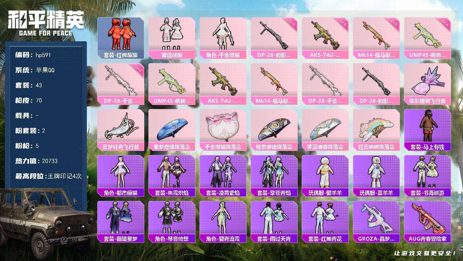 【店主推荐捡漏号!可直接换绑】苹果 手Q-0粉装-3特效枪-1载具-0粉色飞行