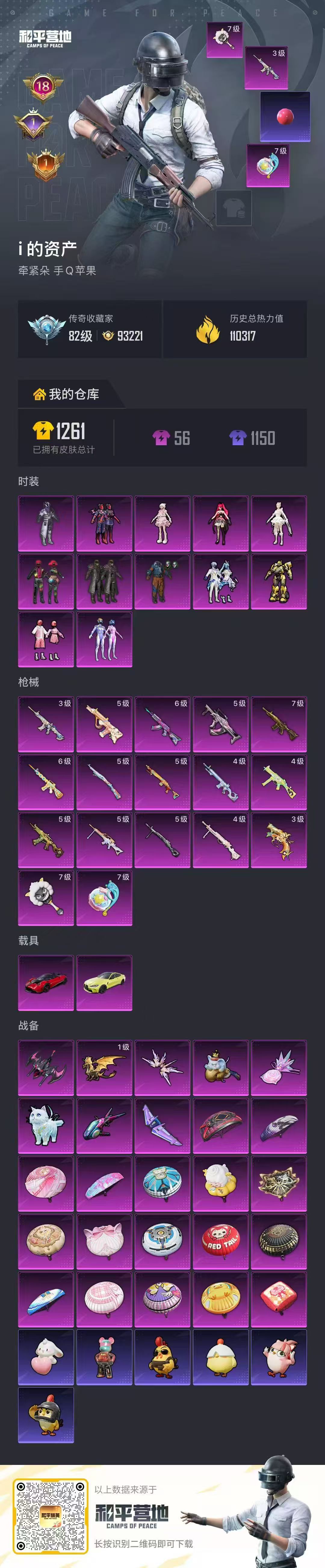 苹果 手Q-18粉装-8特效枪-2载具-5粉色飞行器-96736热力值-11王牌